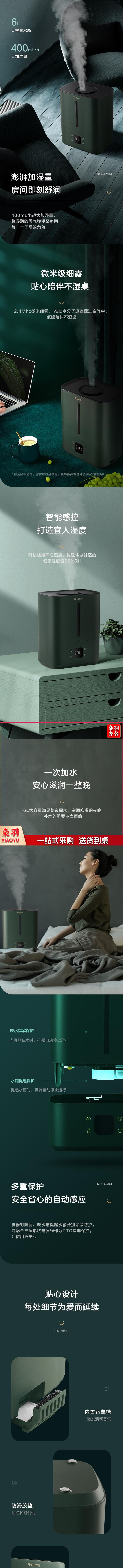 格力(GREE)SFK-60X61 加湿器 6升低噪 松杉绿