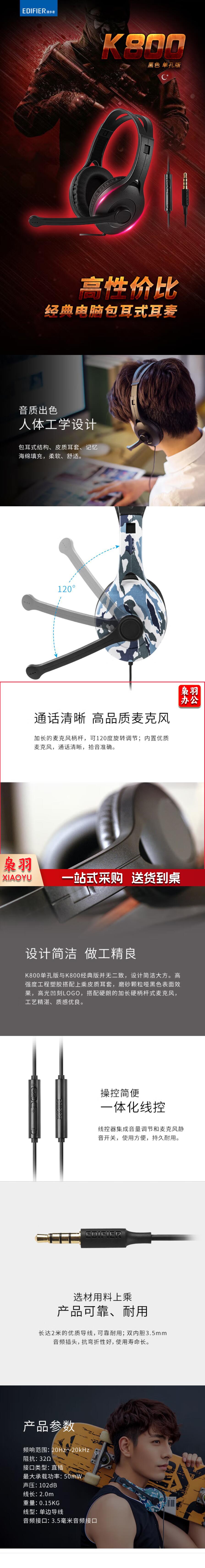漫步者 K800 单孔版 头戴式游戏耳机 耳机耳麦