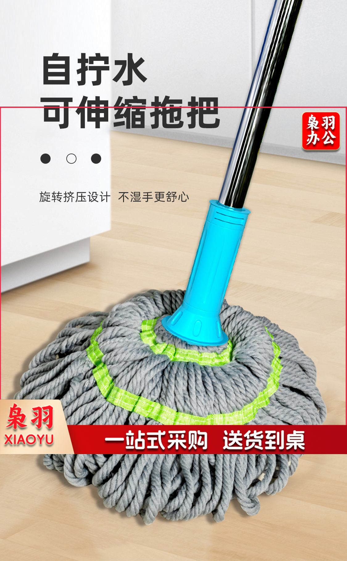 雅高 拧水拖把 必卡锁自拧水拖把 旋转拧水拖把免手洗墩布拖布
