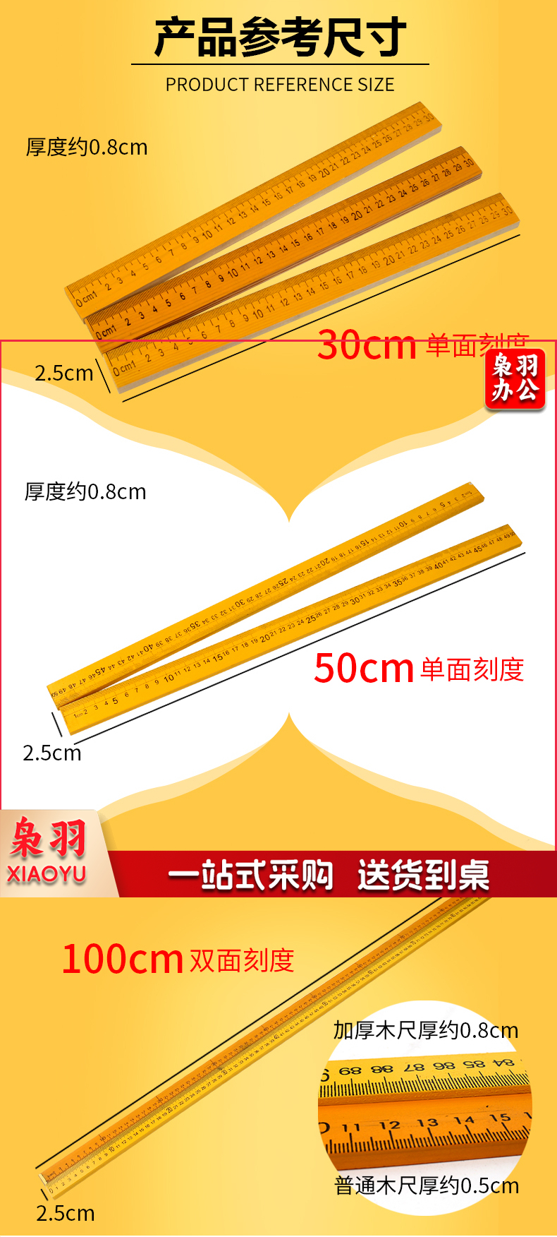 500mm 教学教具 实木直尺 教学 直尺 木尺