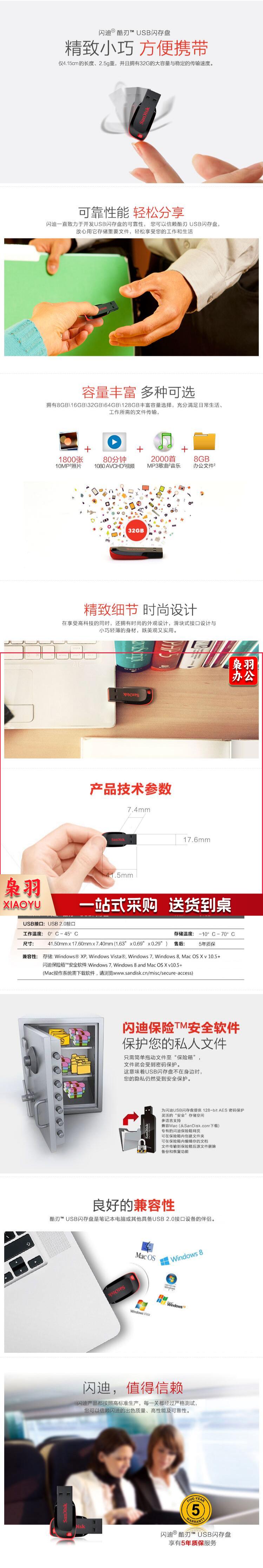 闪迪 (SanDisk)32GB USB2.0 U盘 CZ50酷刃 黑红色
