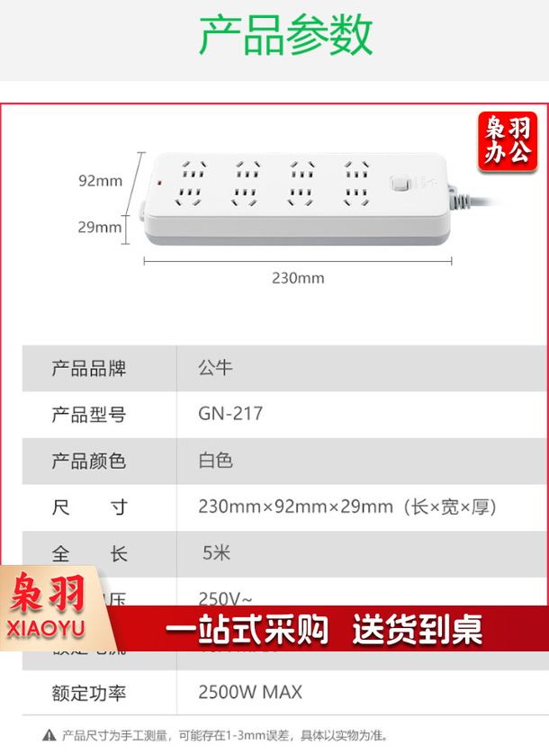 公牛(BULL)过载保护插座/插线板/插排/排插/接线板/拖线板 8位总控全长5米 GN-217 TJHX08081009128