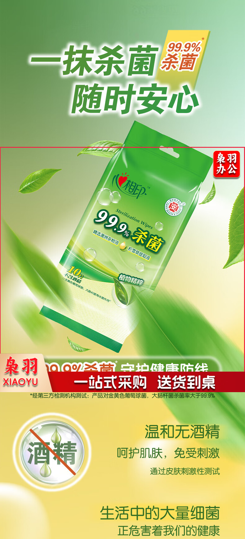 心相印湿巾【肖战推荐】卫生99.9%杀菌湿巾 10片独立装12包