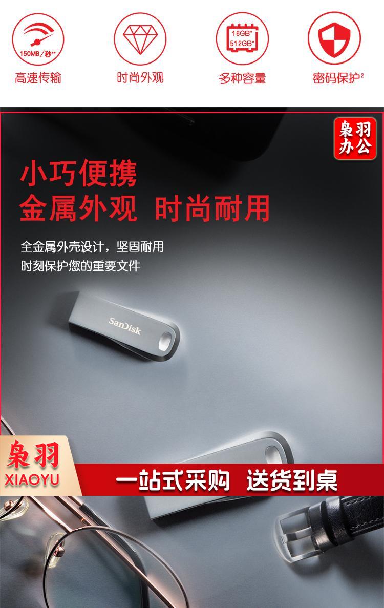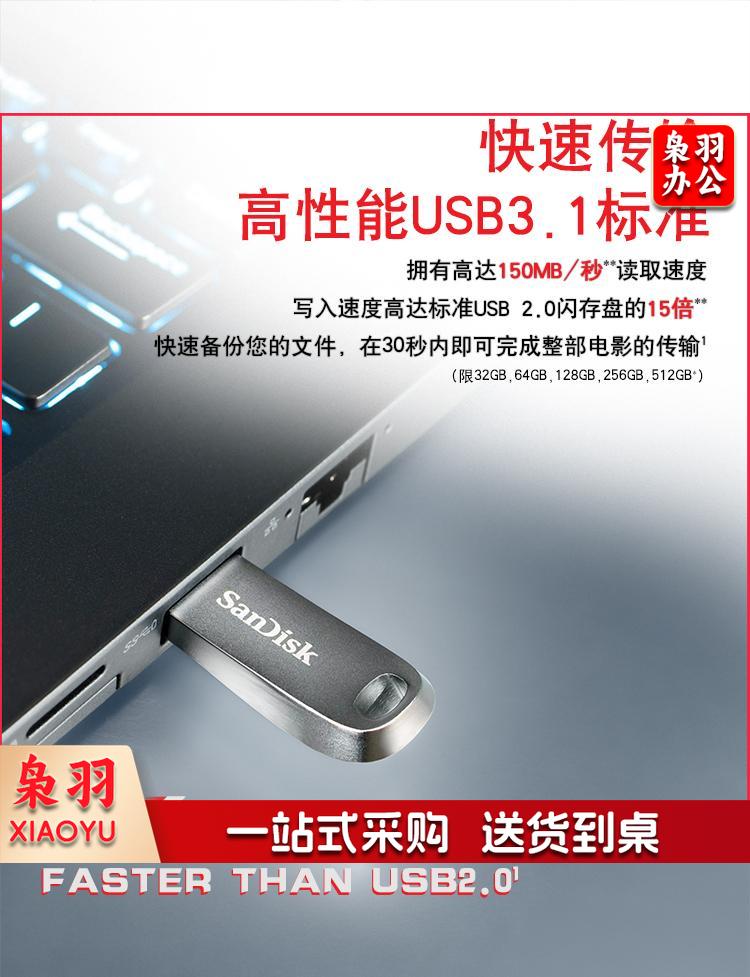 闪迪(SanDisk) 32GB USB3.1 U盘CZ74 读速150MB/s 全金属高品质u盘 安全加密 学习办公商务优盘