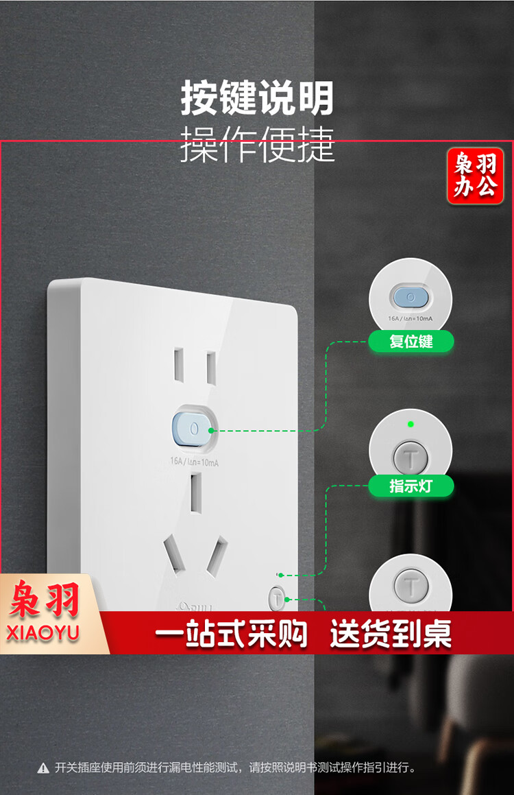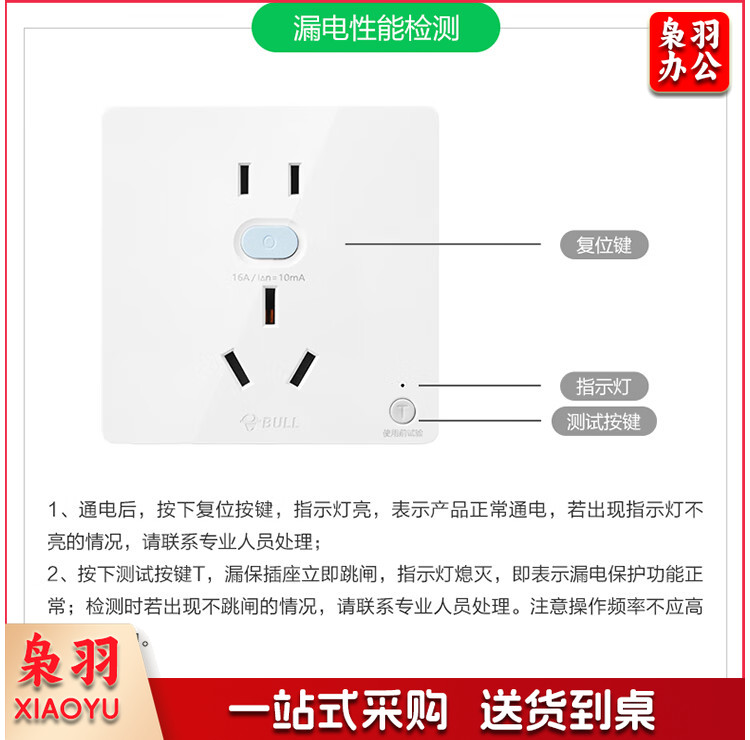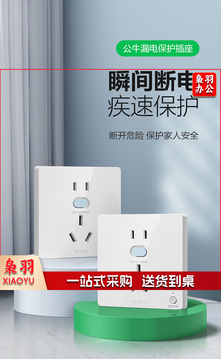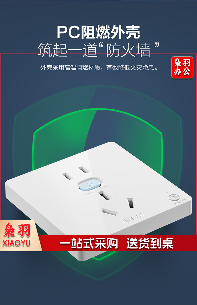 公牛(BULL)开关插座 GTP系列 16A正五孔带漏电保护插座GTPZ229暗装