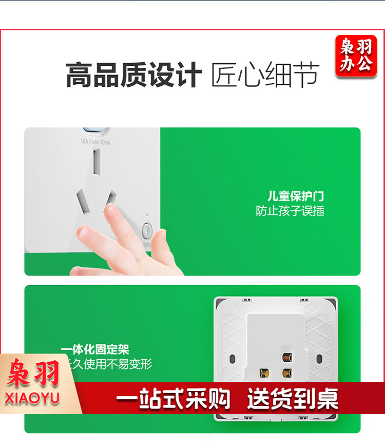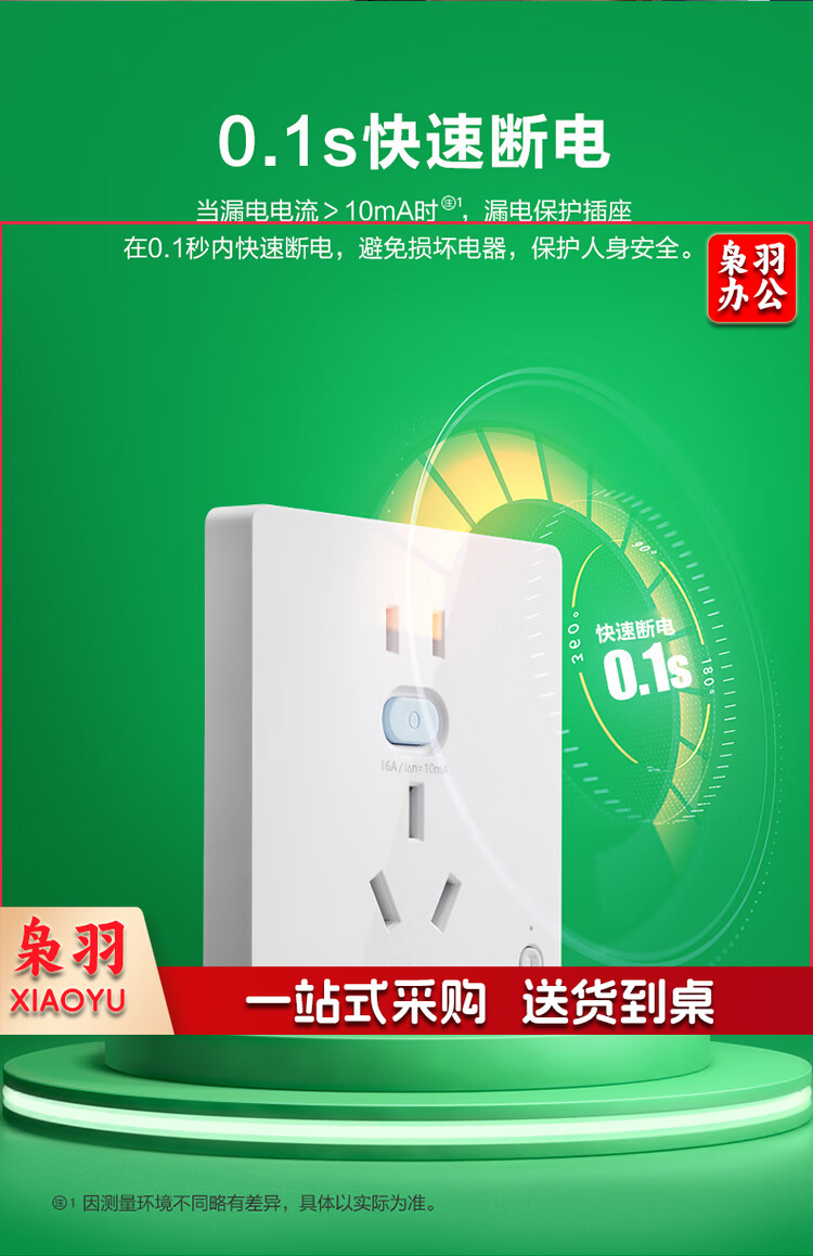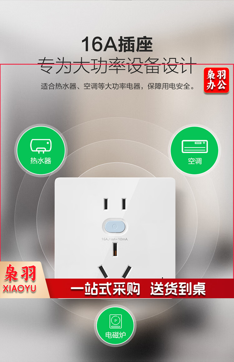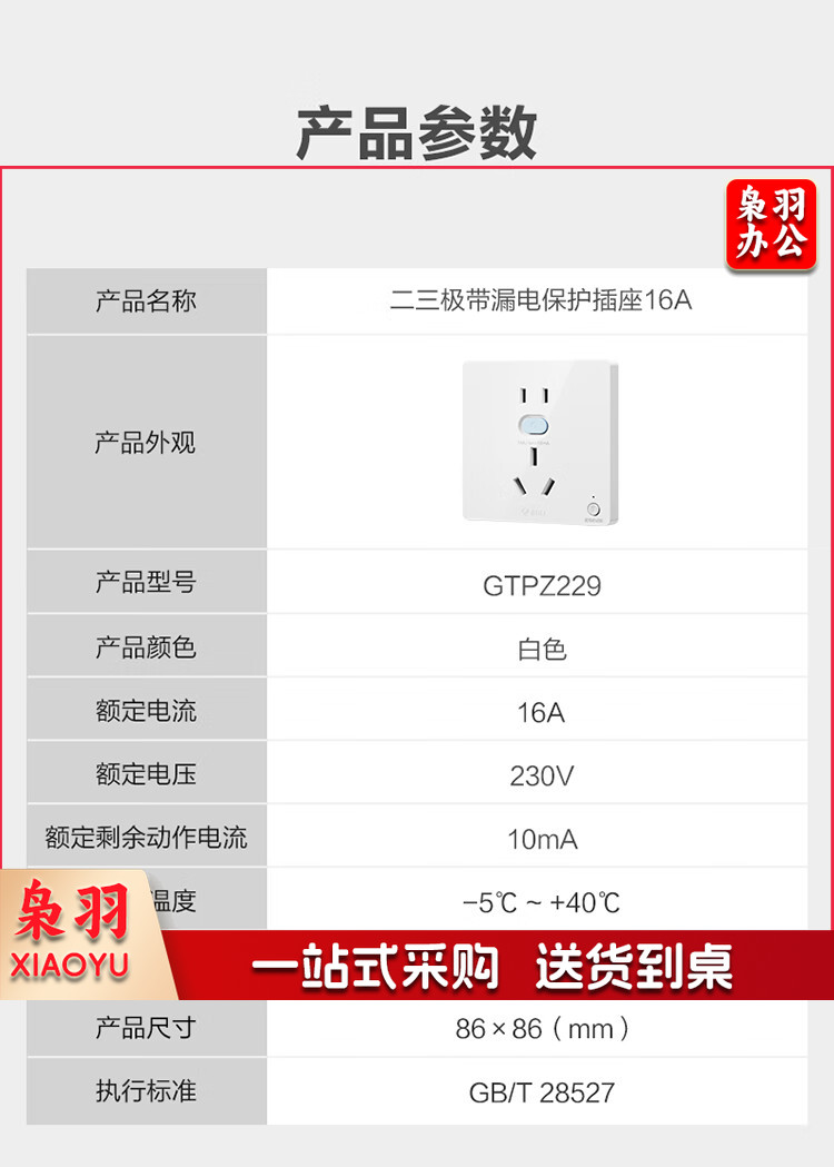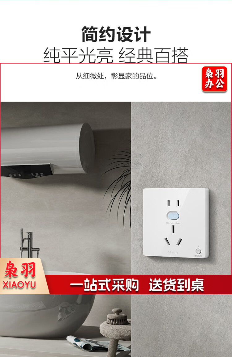 公牛(BULL)开关插座 GTP系列 16A正五孔带漏电保护插座GTPZ229暗装