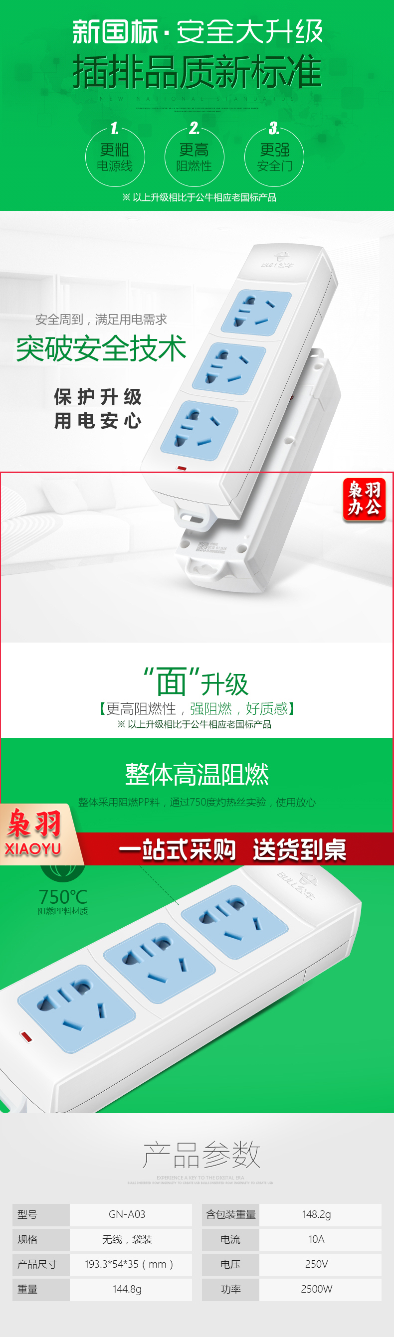 公牛(BULL) GN-A03 不带电源线 无线 多位插座 10A250V
