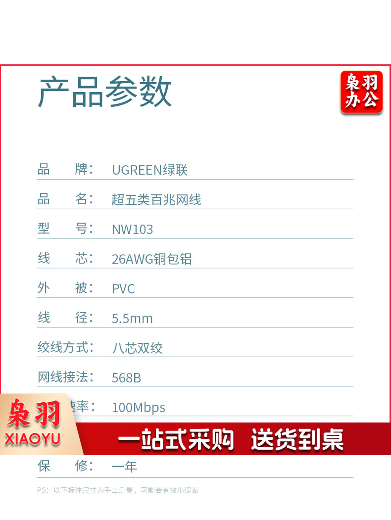 绿联(UGREEN)超五类网线 Cat5e超5类成品线 电脑宽带连接百兆网络 非屏蔽八芯8芯双绞跳线10米 30642