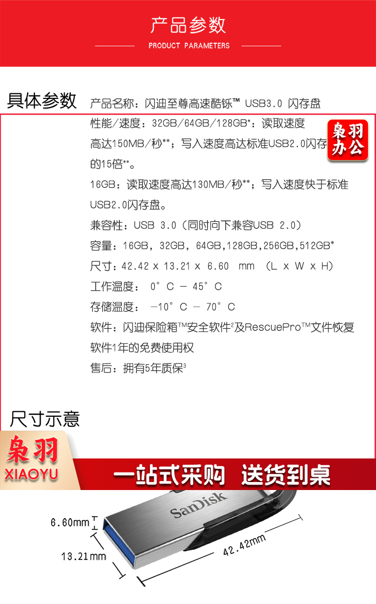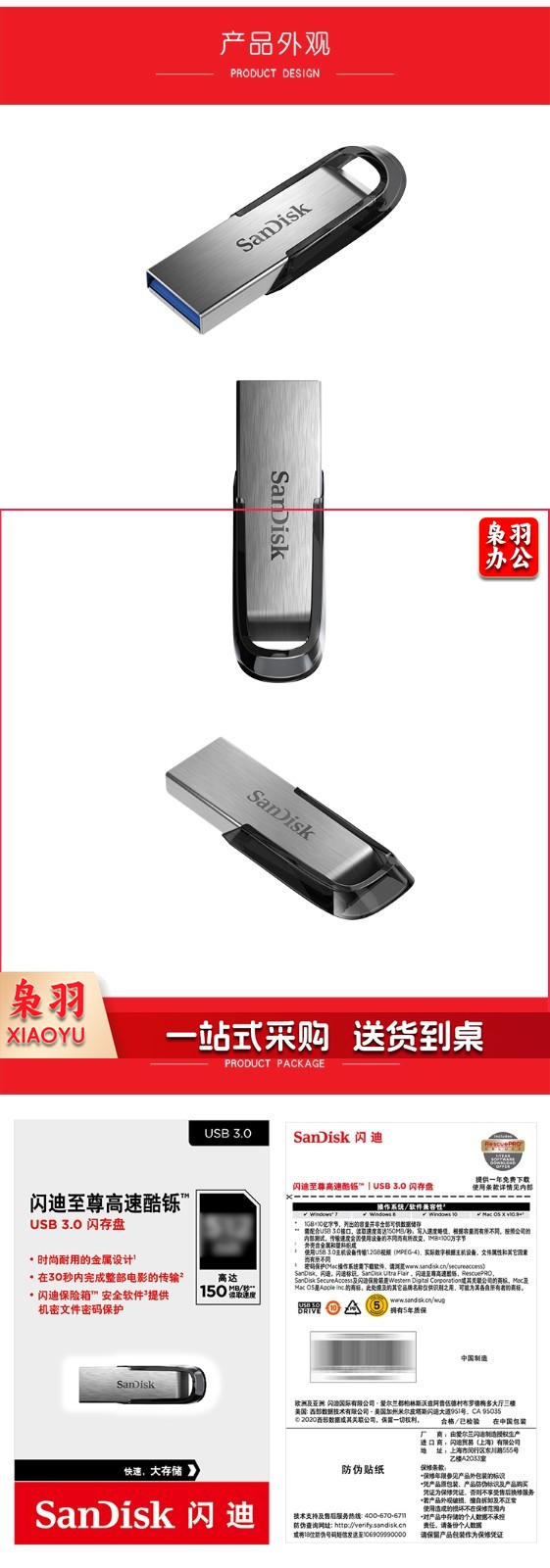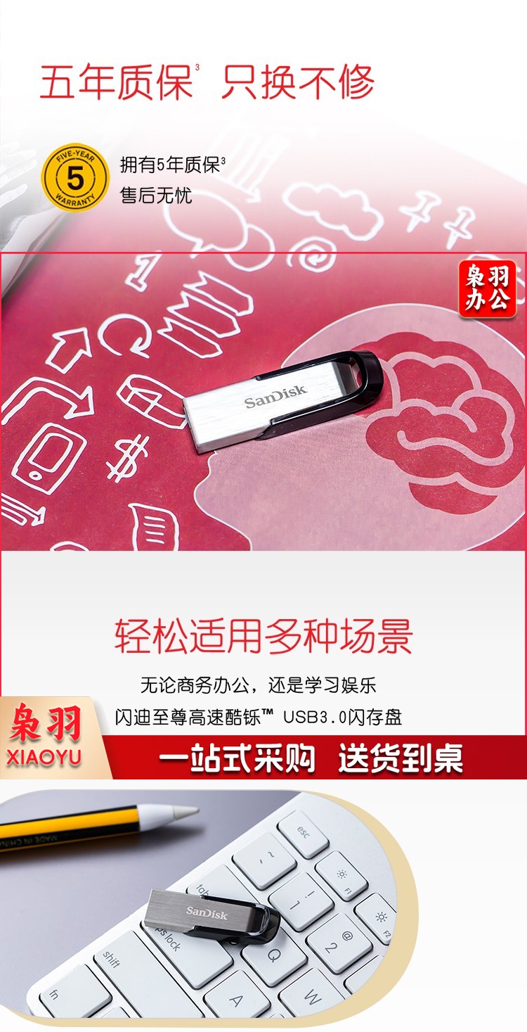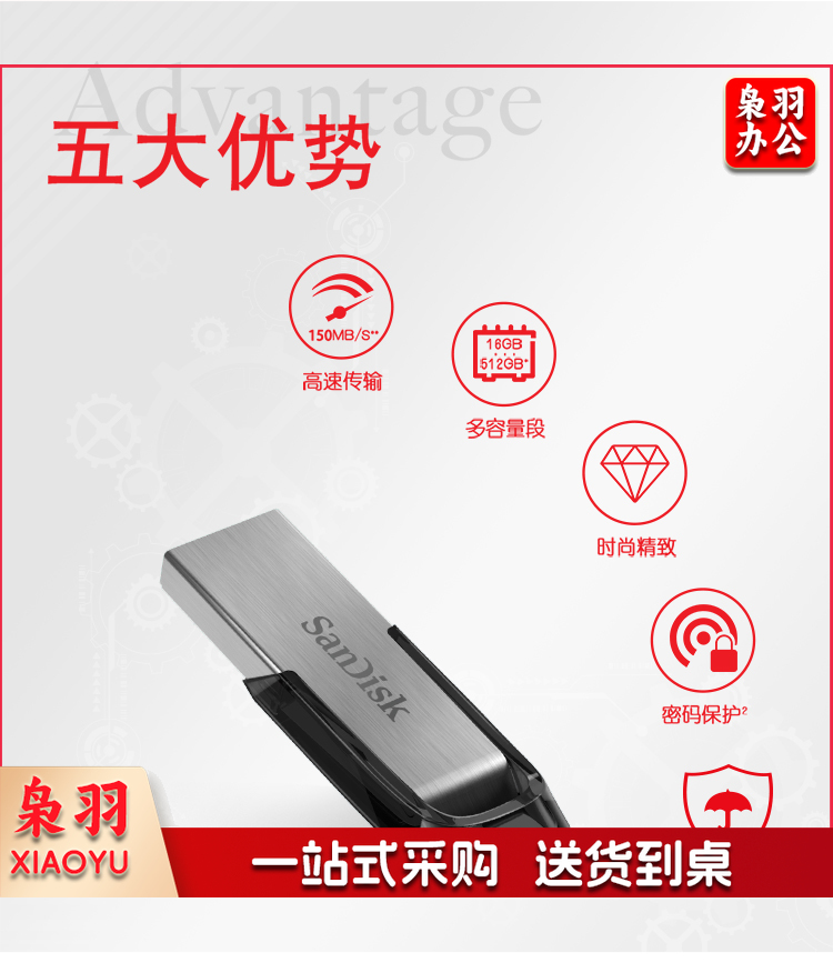 闪迪 (SanDisk) 64GBU盘 安全加密 高速读写 学习办公投标 电脑车载 金属优盘 USB3.0.