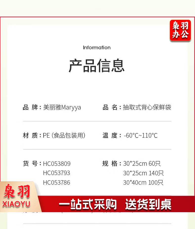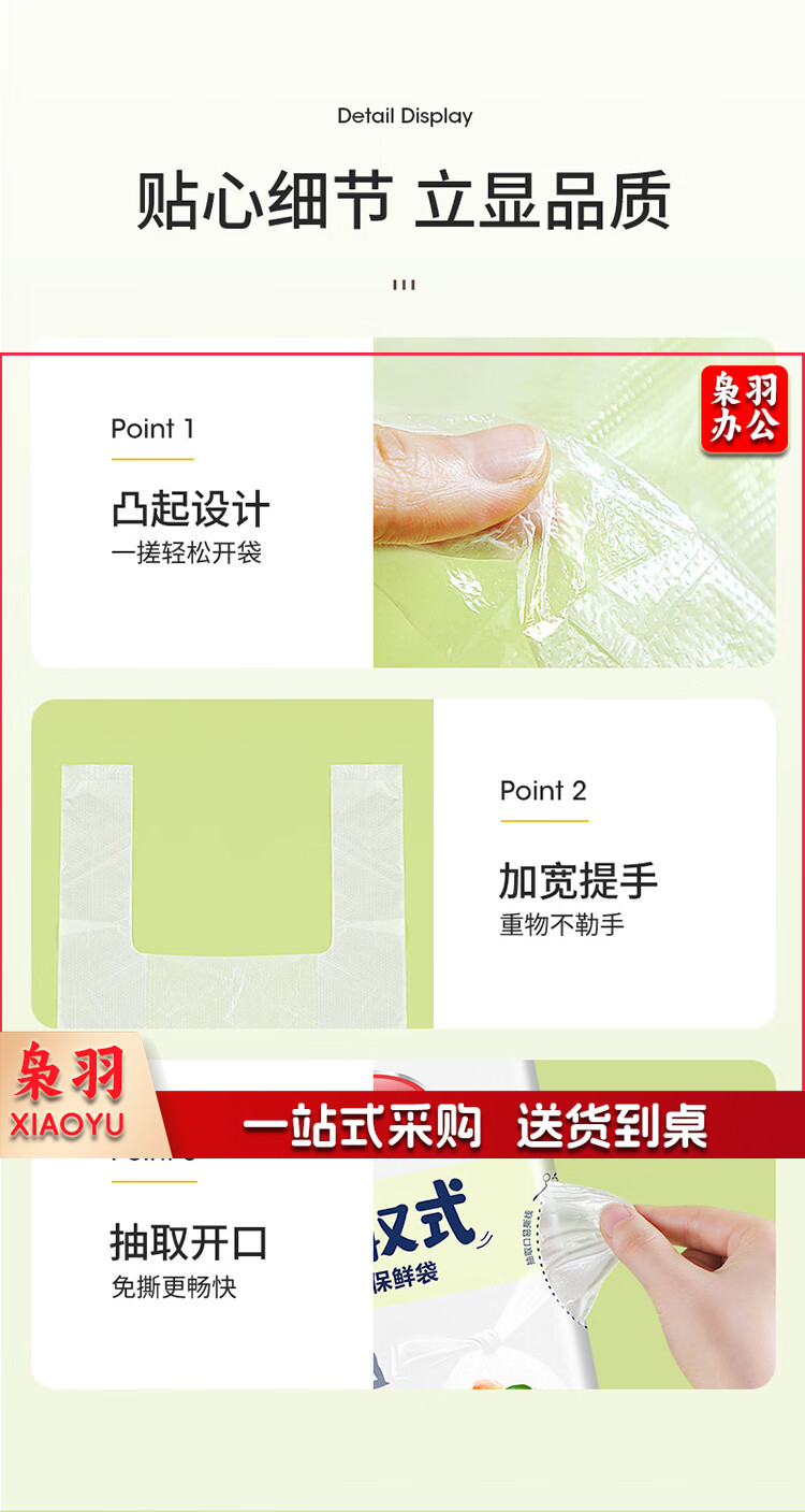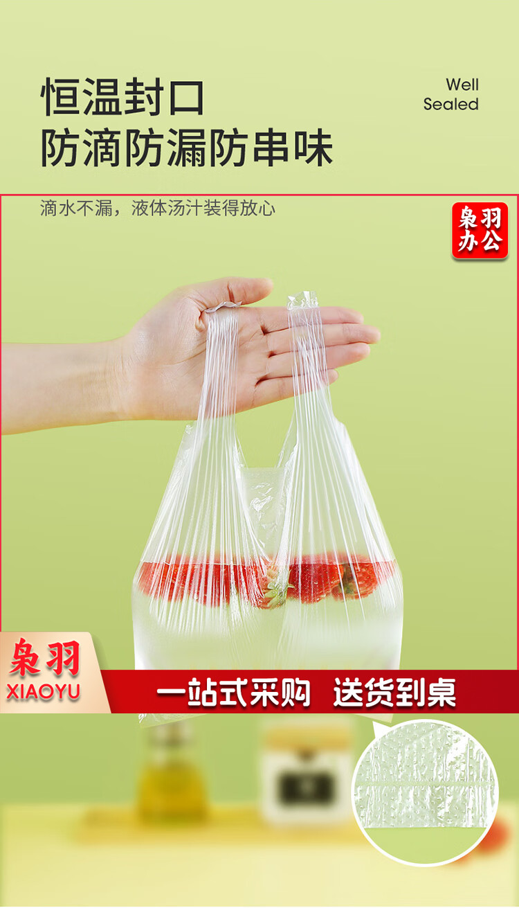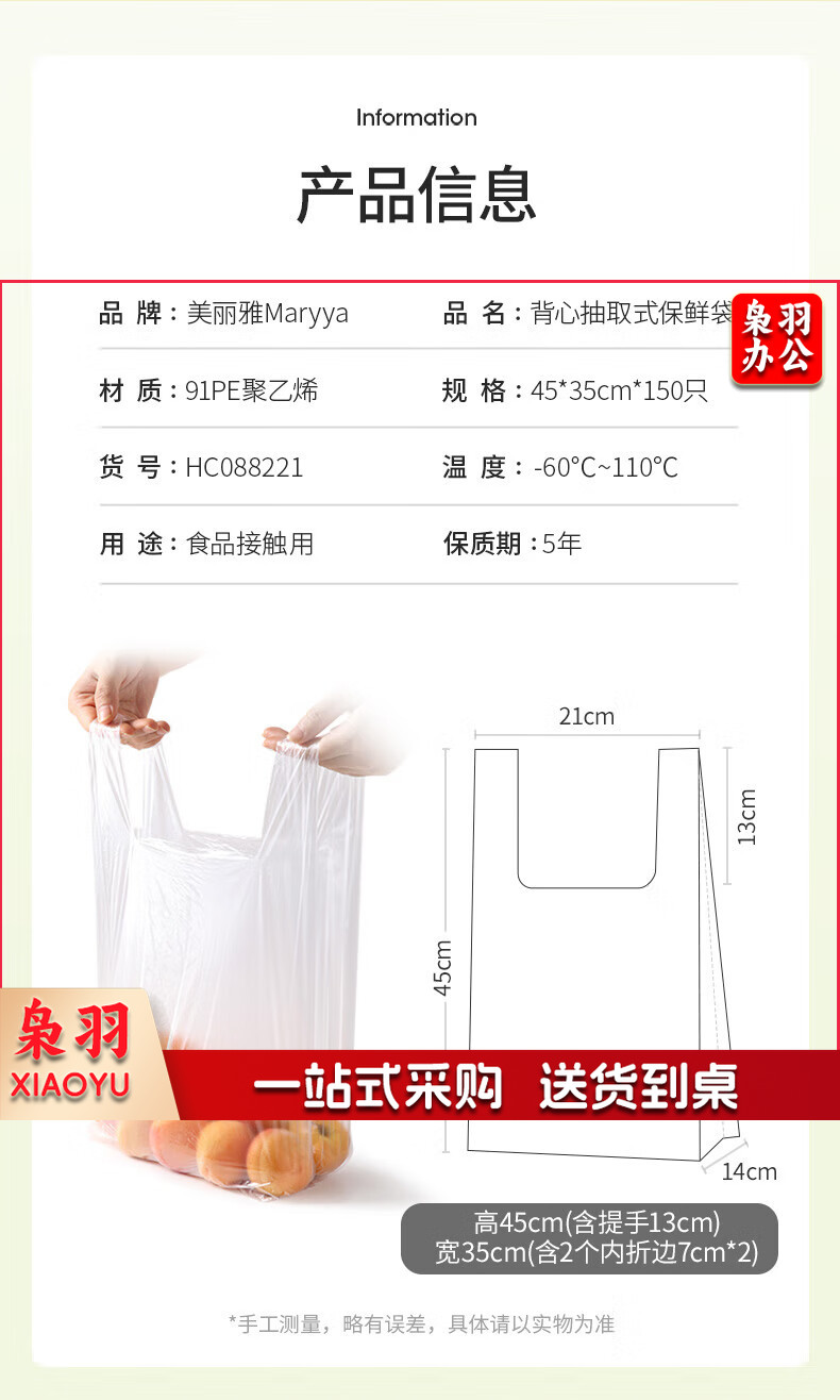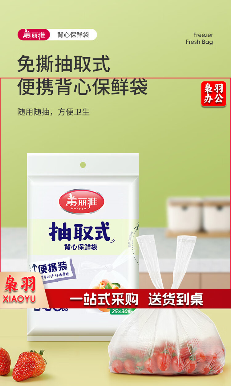 美丽雅 抽取式背心保鲜袋免手撕PE食品密封袋中号冰箱分装袋 背心保鲜袋-中号25cm*30cm*60只*10袋装