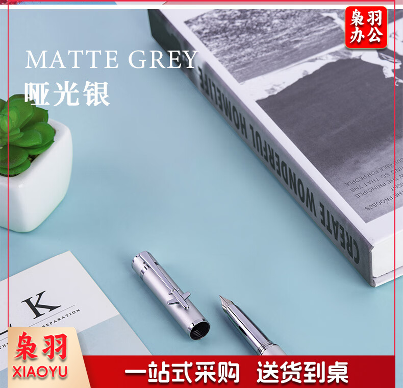 英雄(HERO)钢笔 H605B天光银 签字笔铱金钢笔