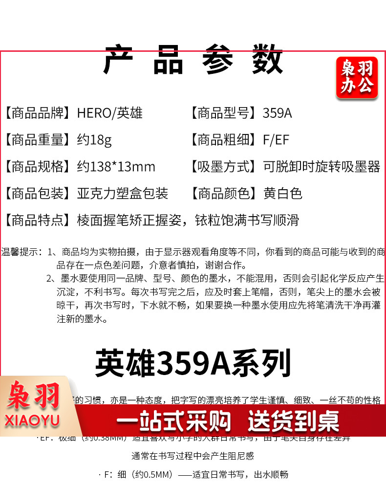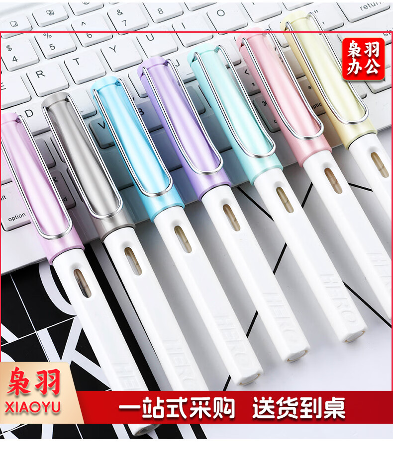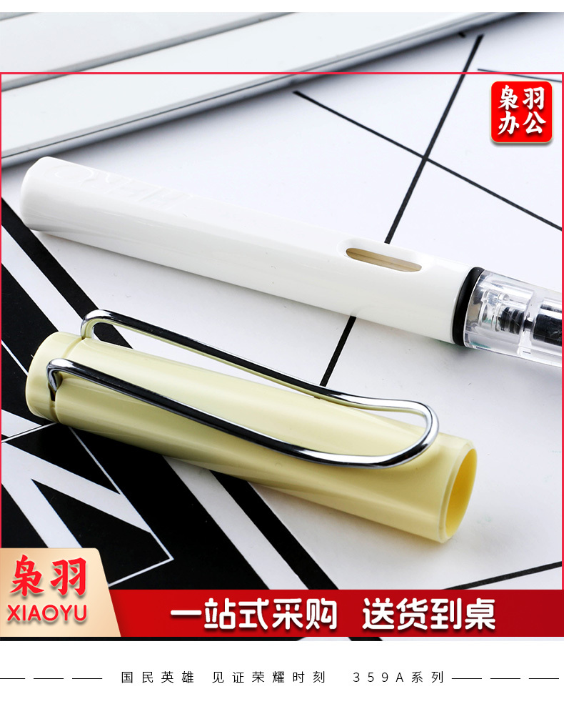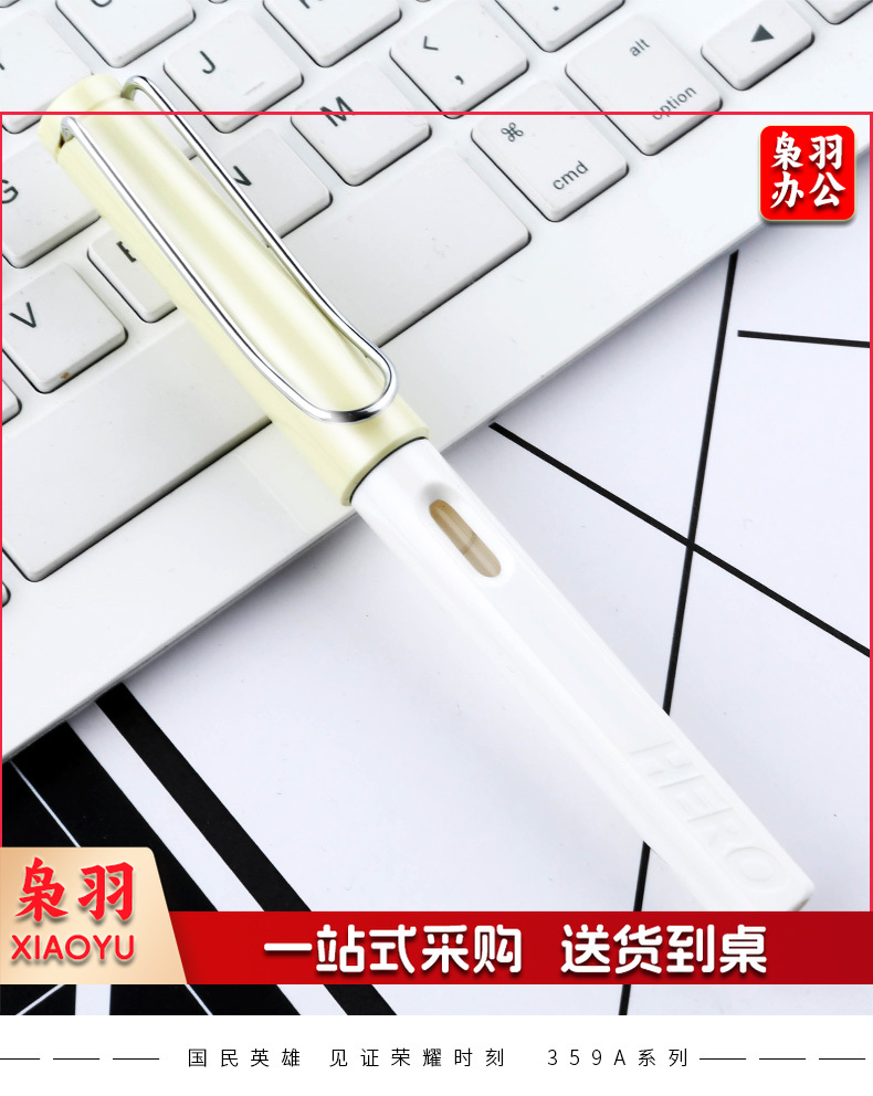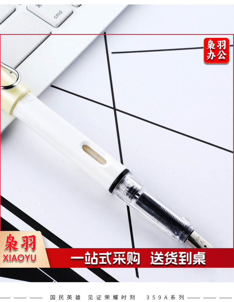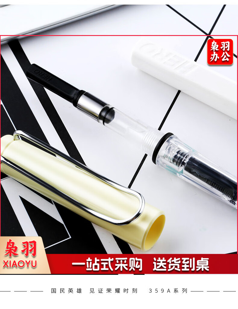 英雄(HERO)359A正姿 铱金钢笔签字笔 薄厚片工艺铱金笔尖(赠6支墨囊)黄白EF尖