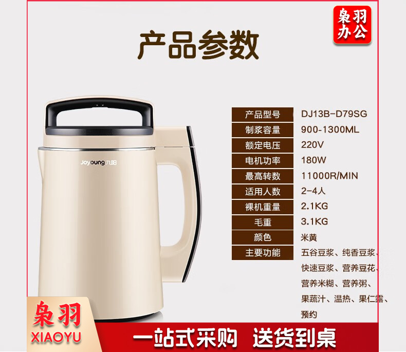 九阳 豆浆机榨汁机双预约免滤 家用多功能米糊机 智能全自动DJ13B-D79SG 【智能双预约】