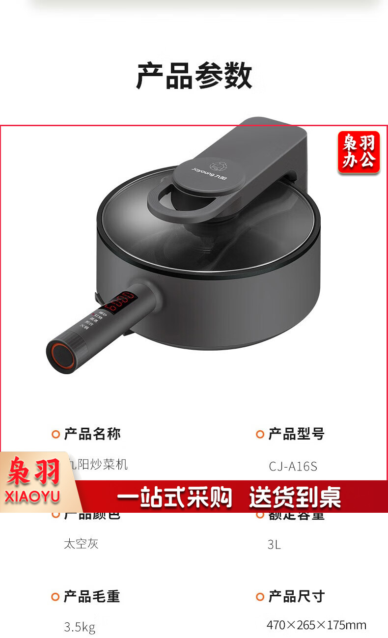 九阳家用自动翻炒 炒菜机 电炒锅 电热锅 电煮锅 多功能料理锅 全自动电炒菜多用一体锅 CJ-A16S