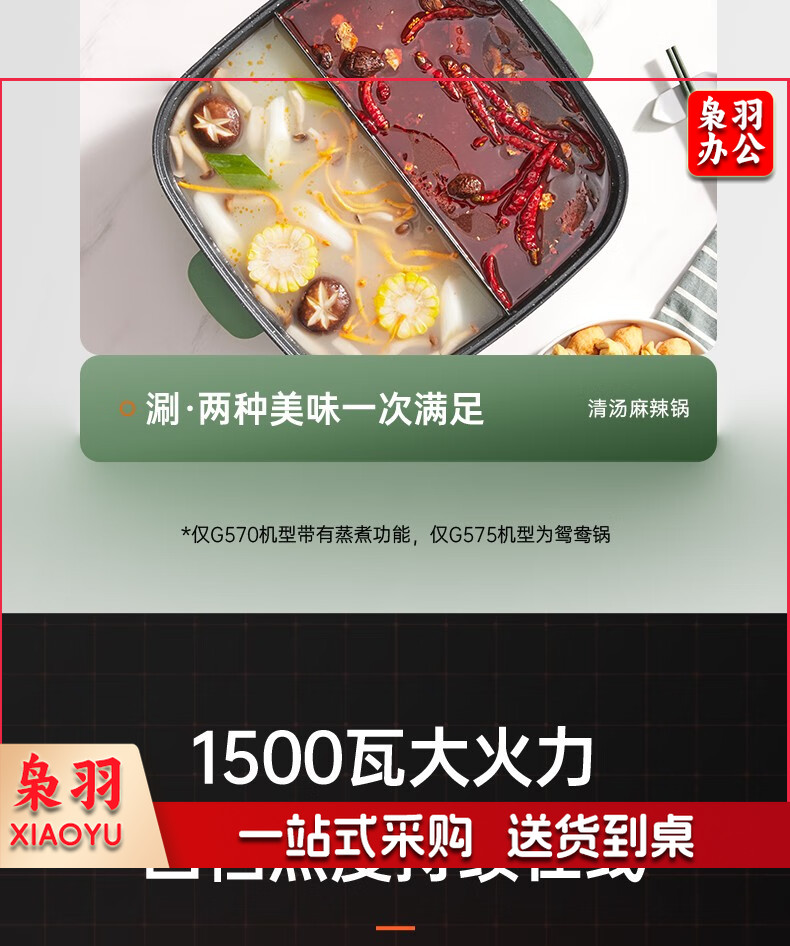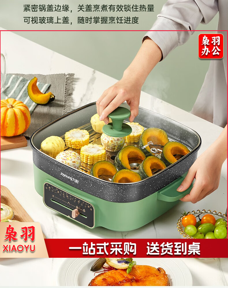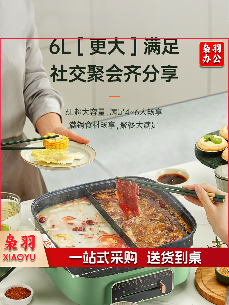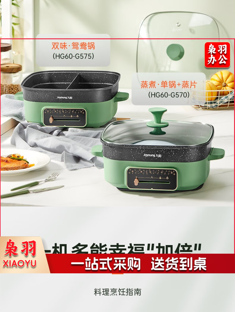 九阳 电火锅蒸锅家用煮锅蒸煮一体锅多功能电热锅多用途锅电锅烤肉锅6L大容量料理锅 G575鸳鸯锅·无蒸片 6L