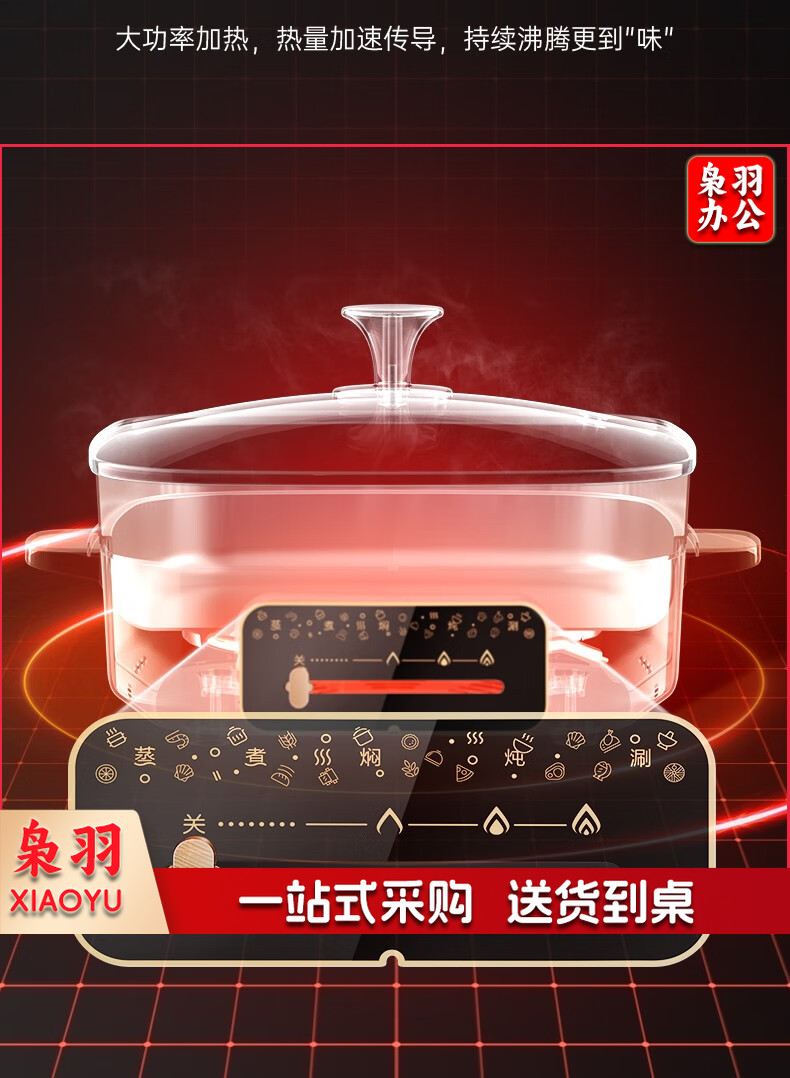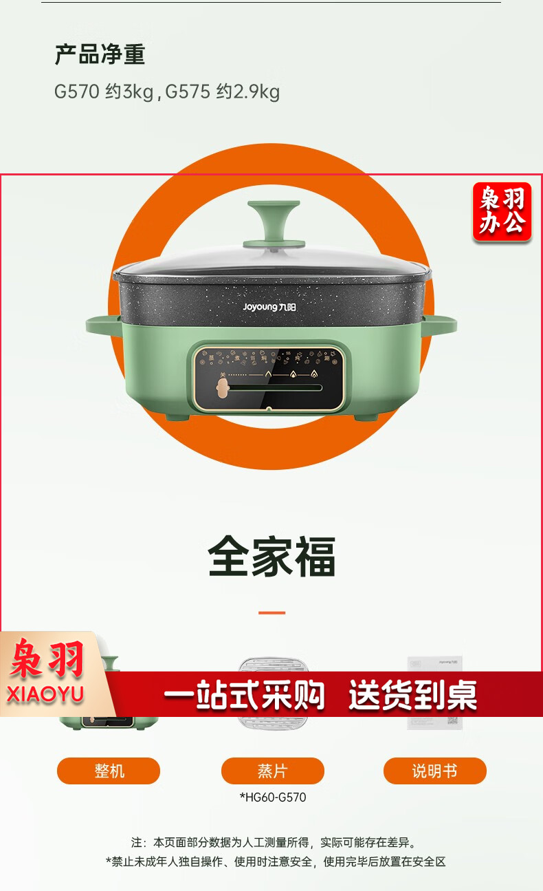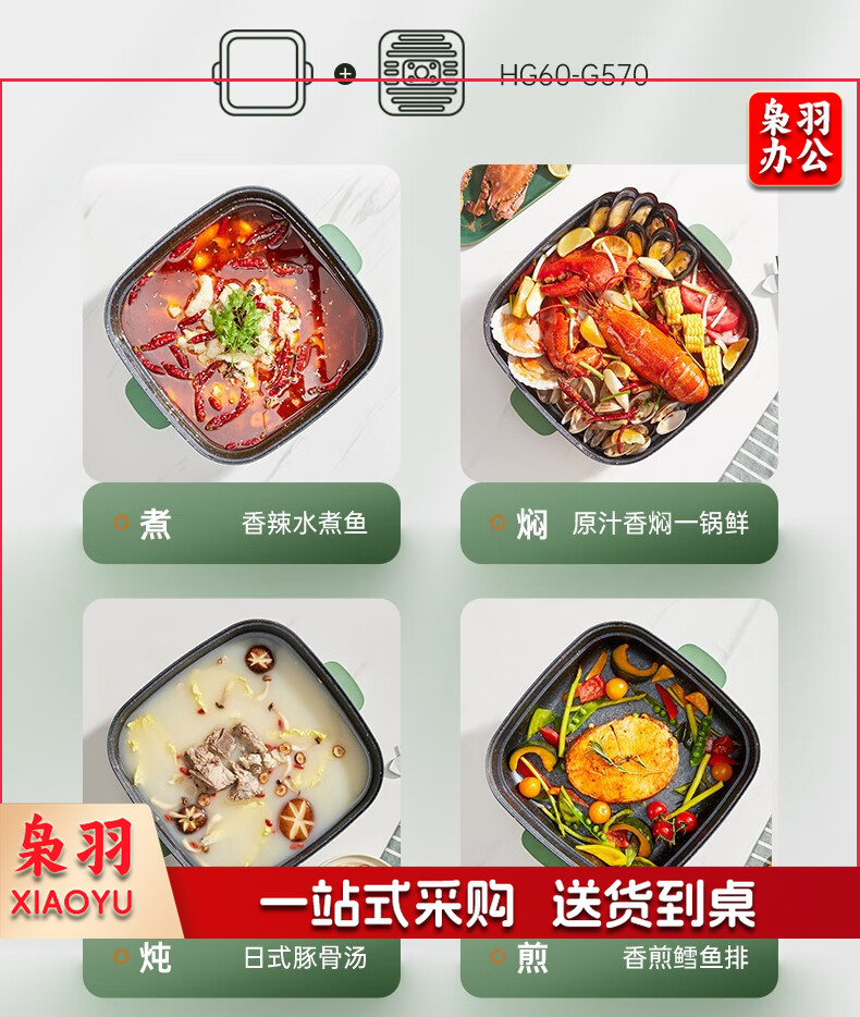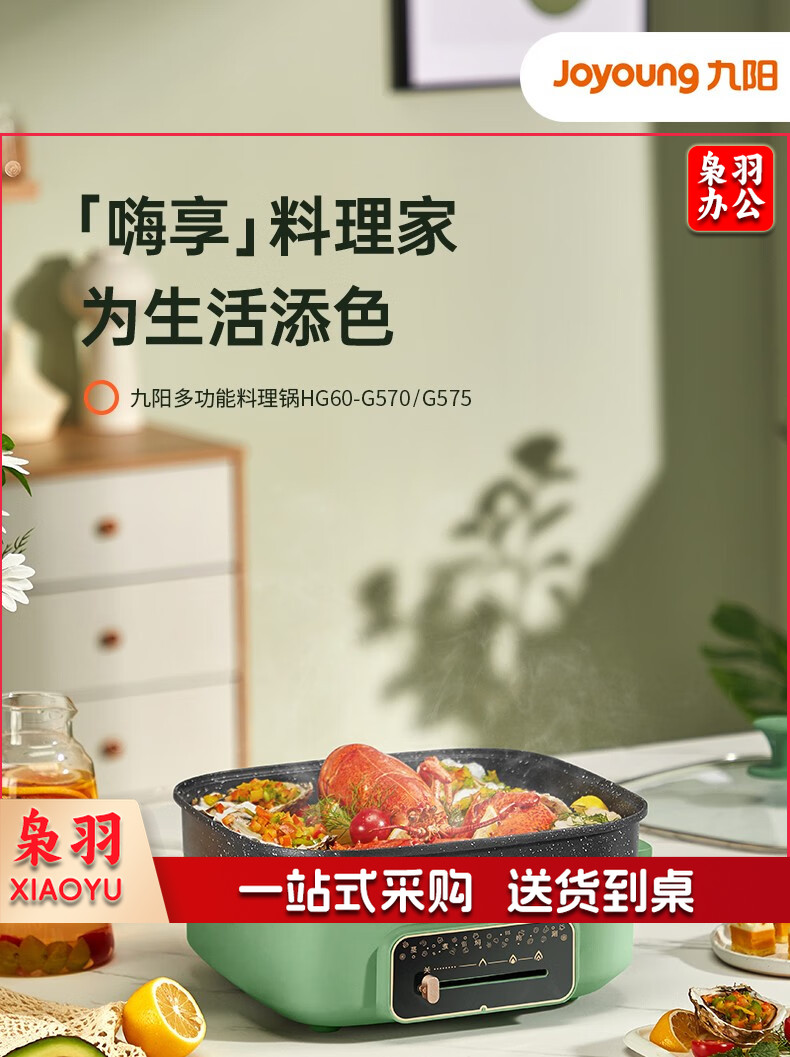 九阳 电火锅蒸锅家用煮锅蒸煮一体锅多功能电热锅多用途锅电锅烤肉锅6L大容量料理锅 G575鸳鸯锅·无蒸片 6L