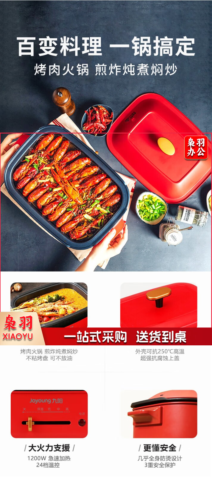 九阳 电火锅 多功能料理锅电烧烤肉盘火锅一体家用电煮锅炒锅网红锅 HG40-G721
