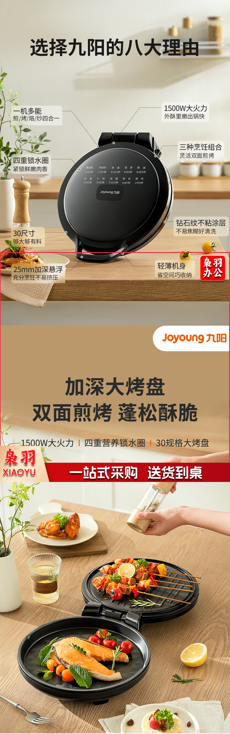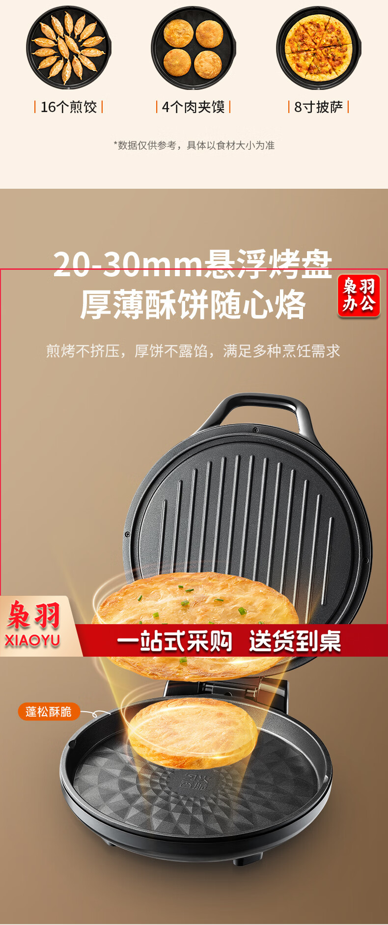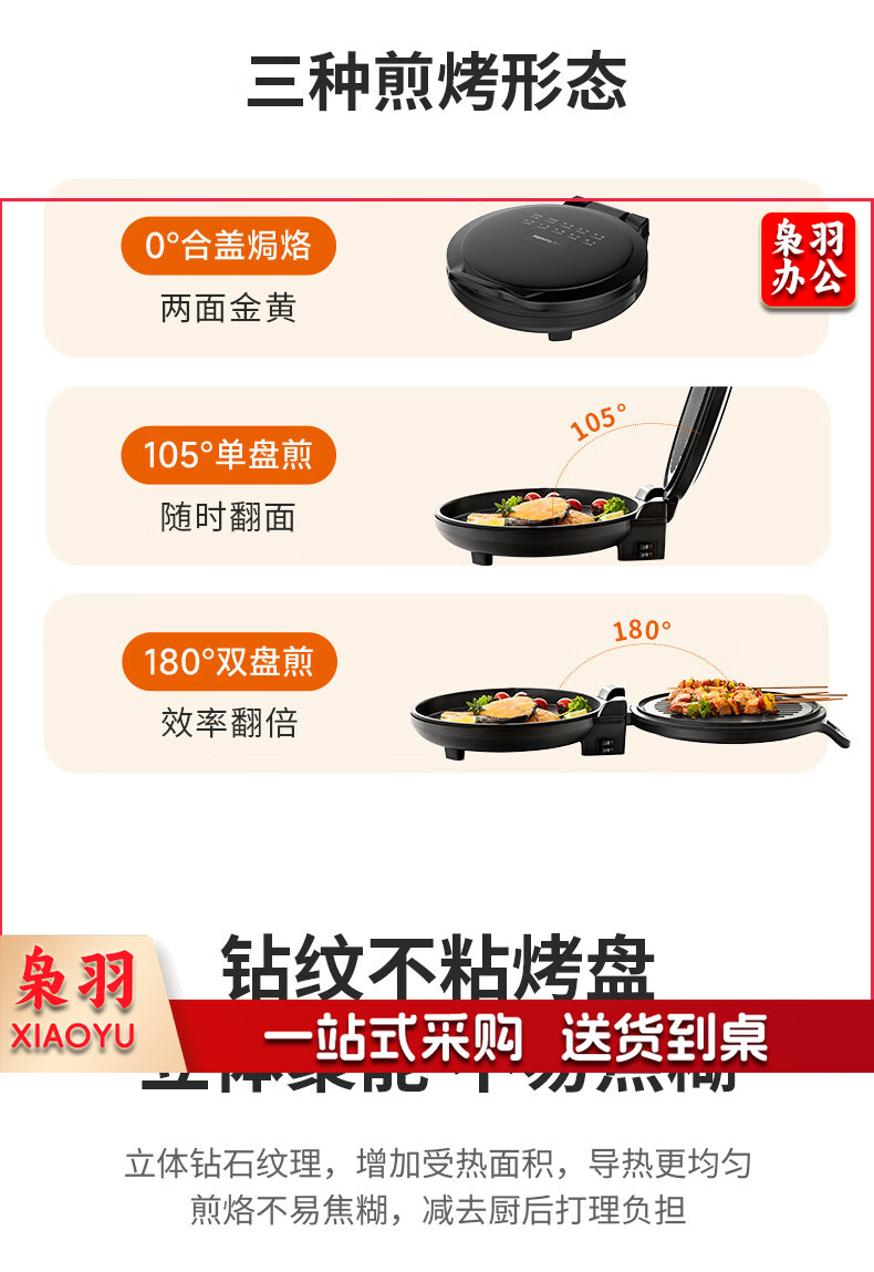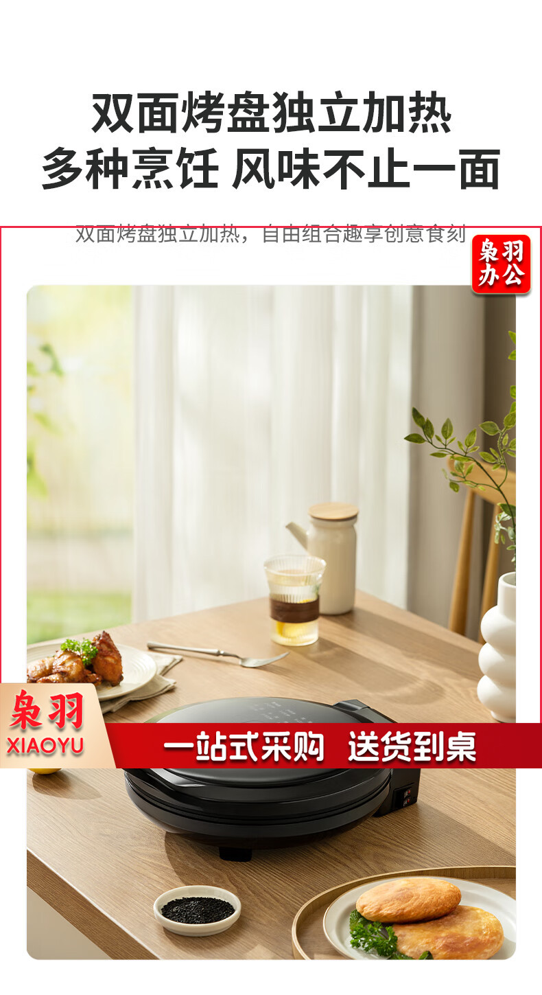九阳 电饼铛 多功能煎饼机大容量双面加热多功能煎烤机 悬浮式不粘烤盘烙饼机 JK23-GK655【23cm】