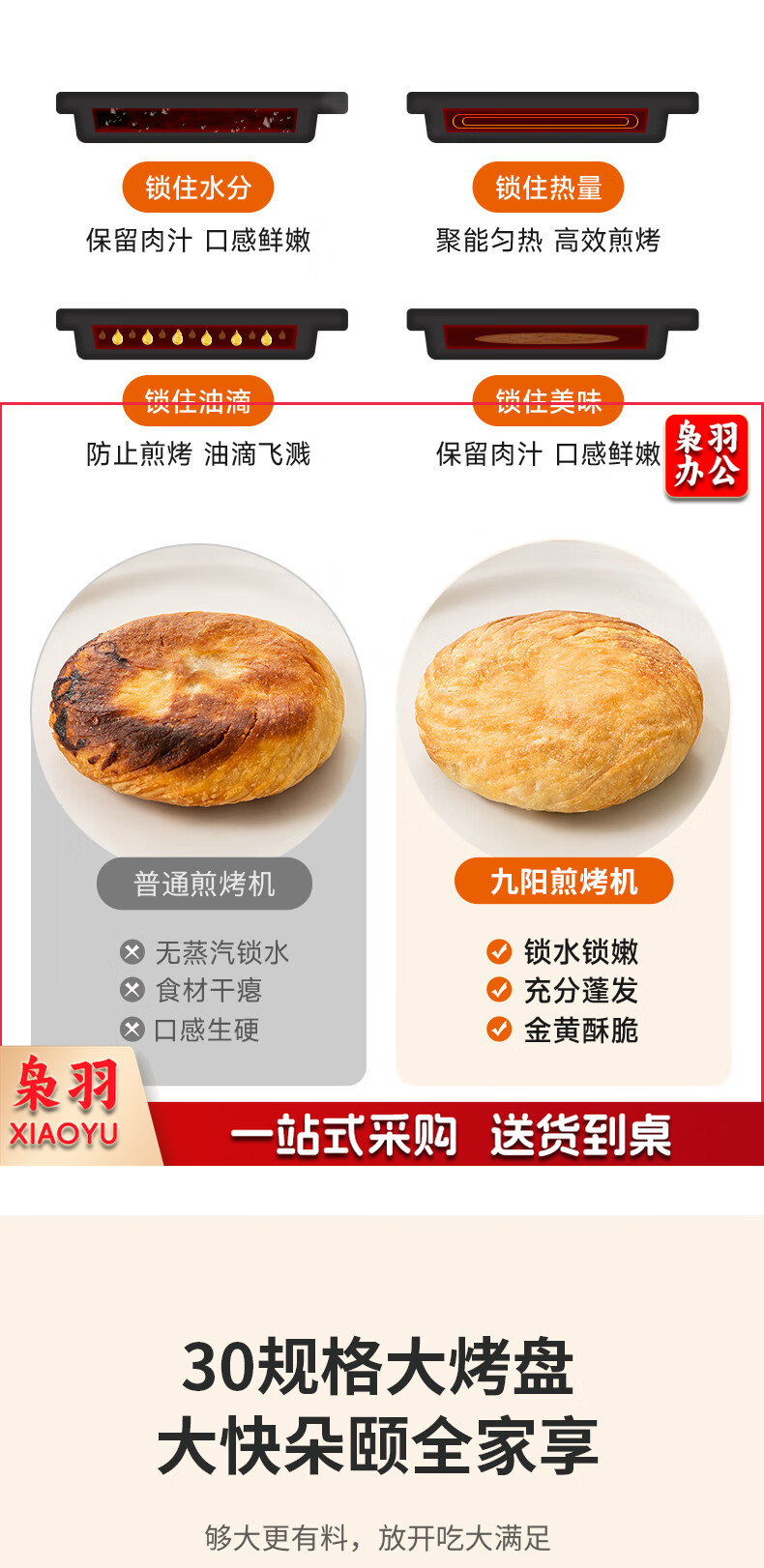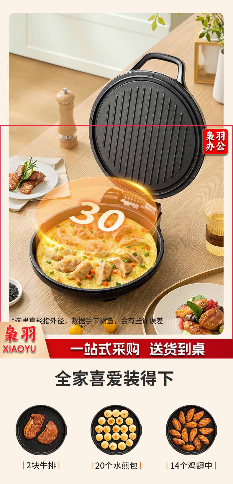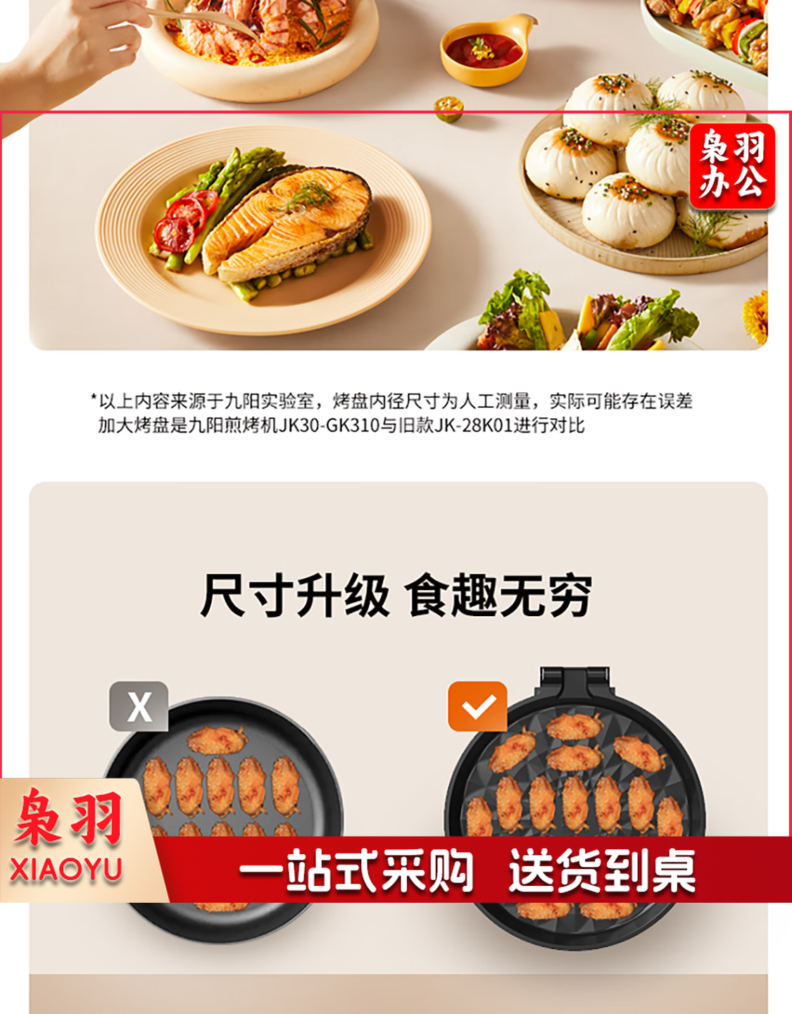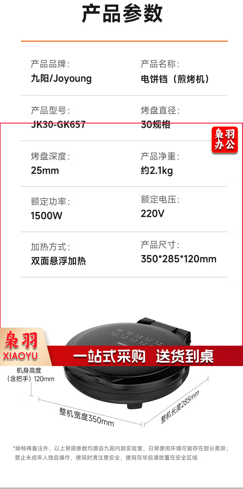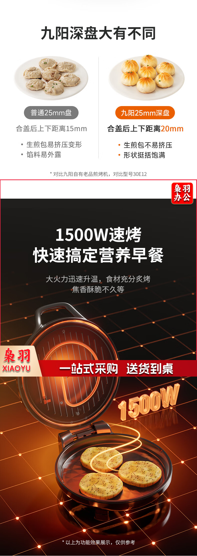 九阳 电饼铛 多功能煎饼机大容量双面加热多功能煎烤机 悬浮式不粘烤盘烙饼机 JK23-GK655【23cm】