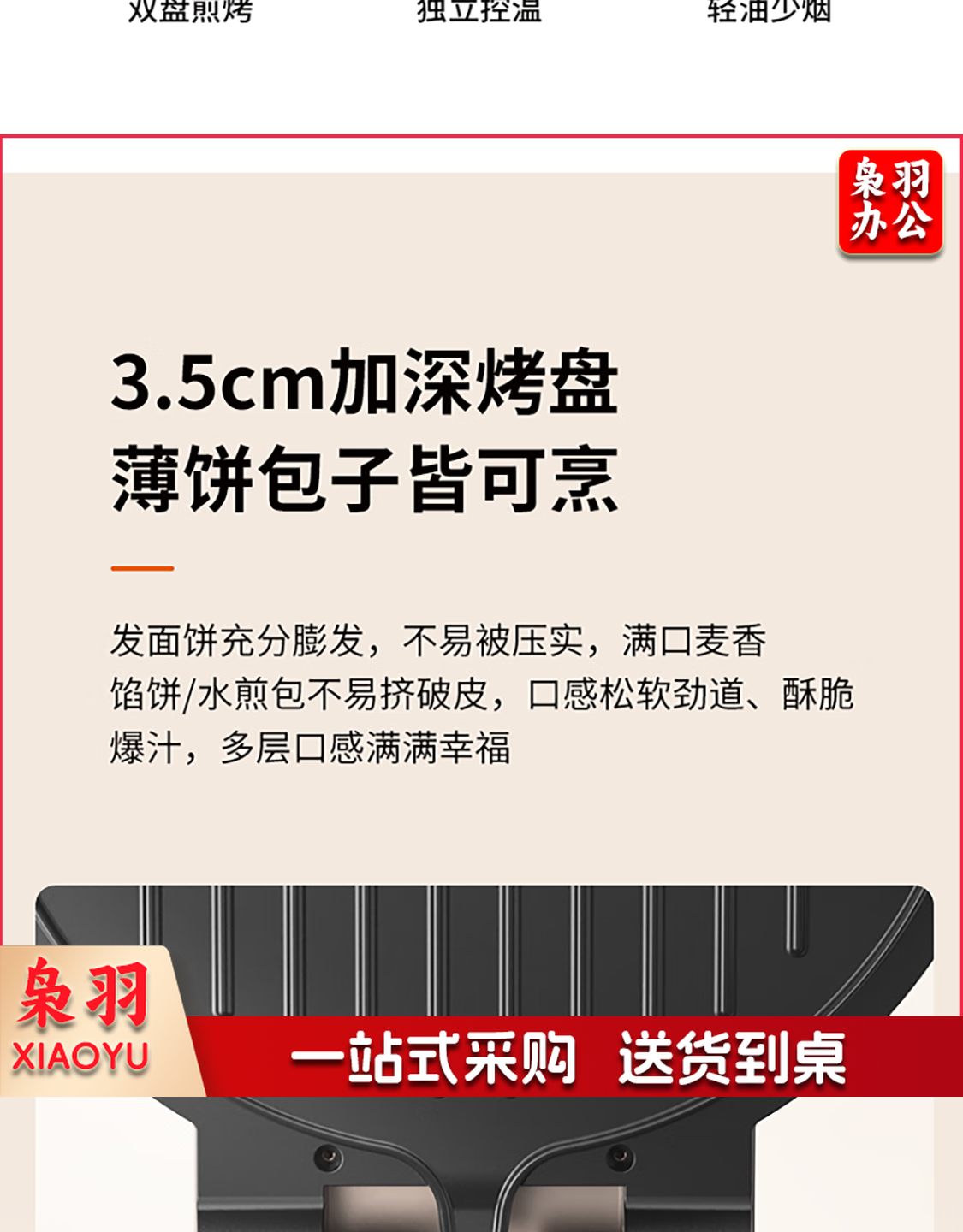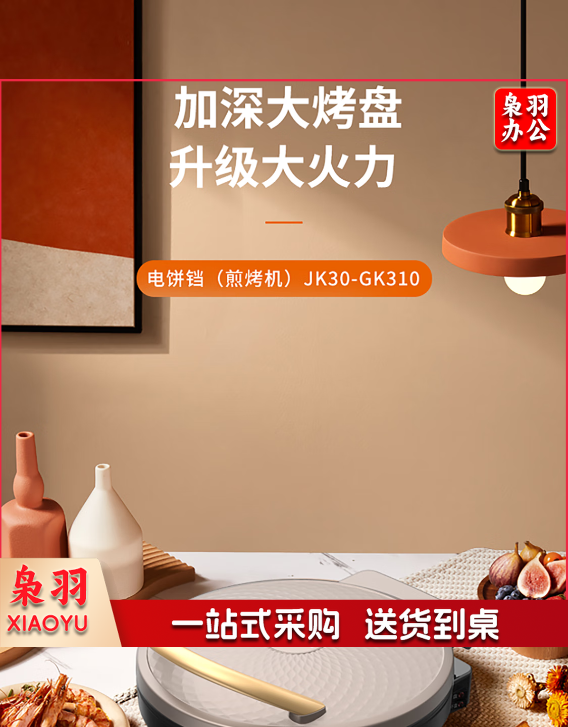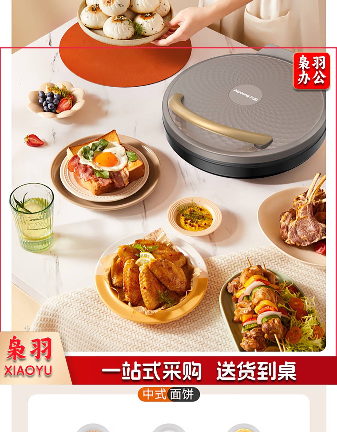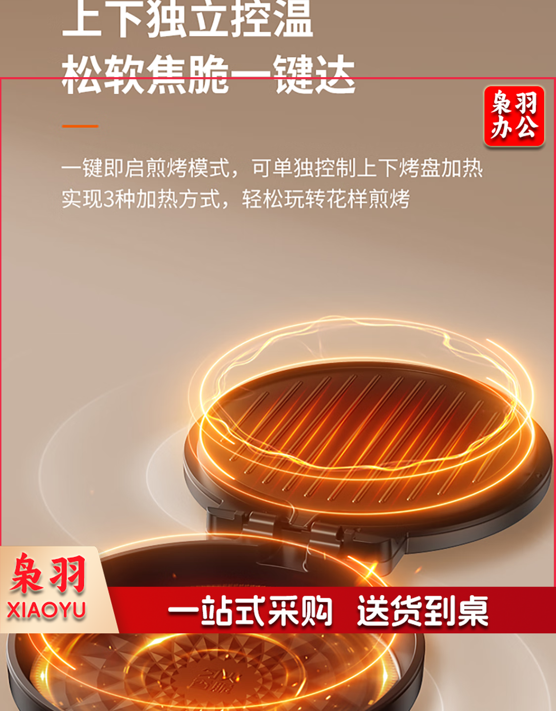 九阳 电饼铛 多功能煎饼机大容量双面加热多功能煎烤机 悬浮式不粘烤盘烙饼机 JK23-GK655【23cm】