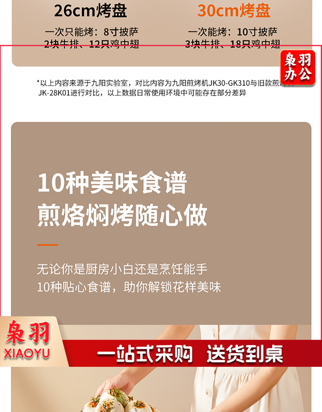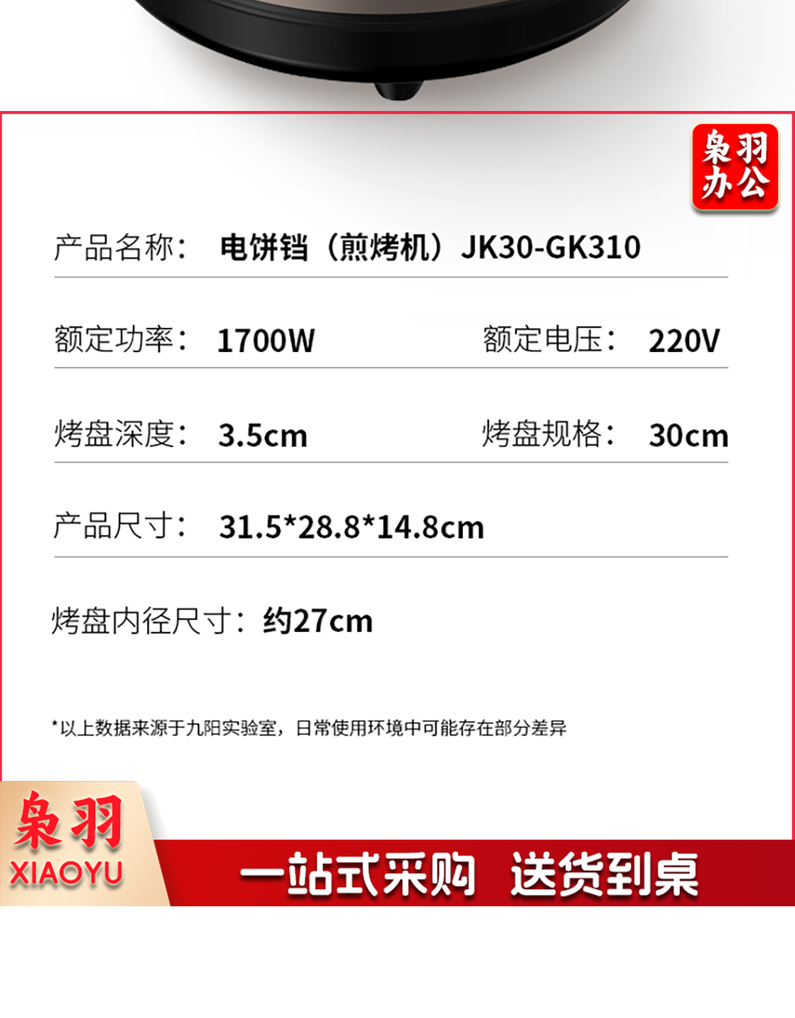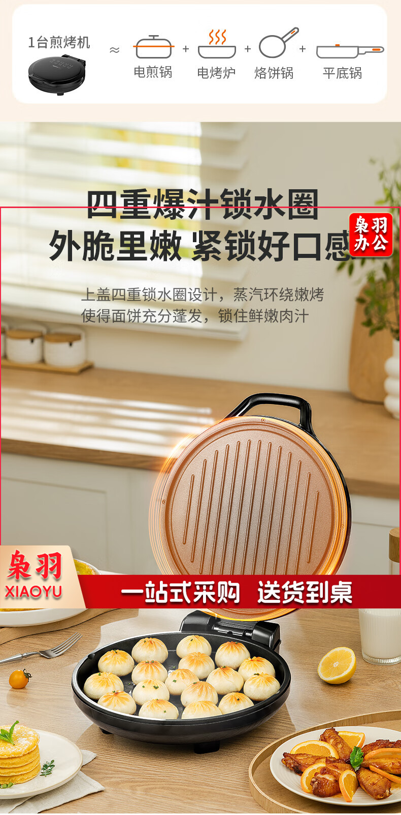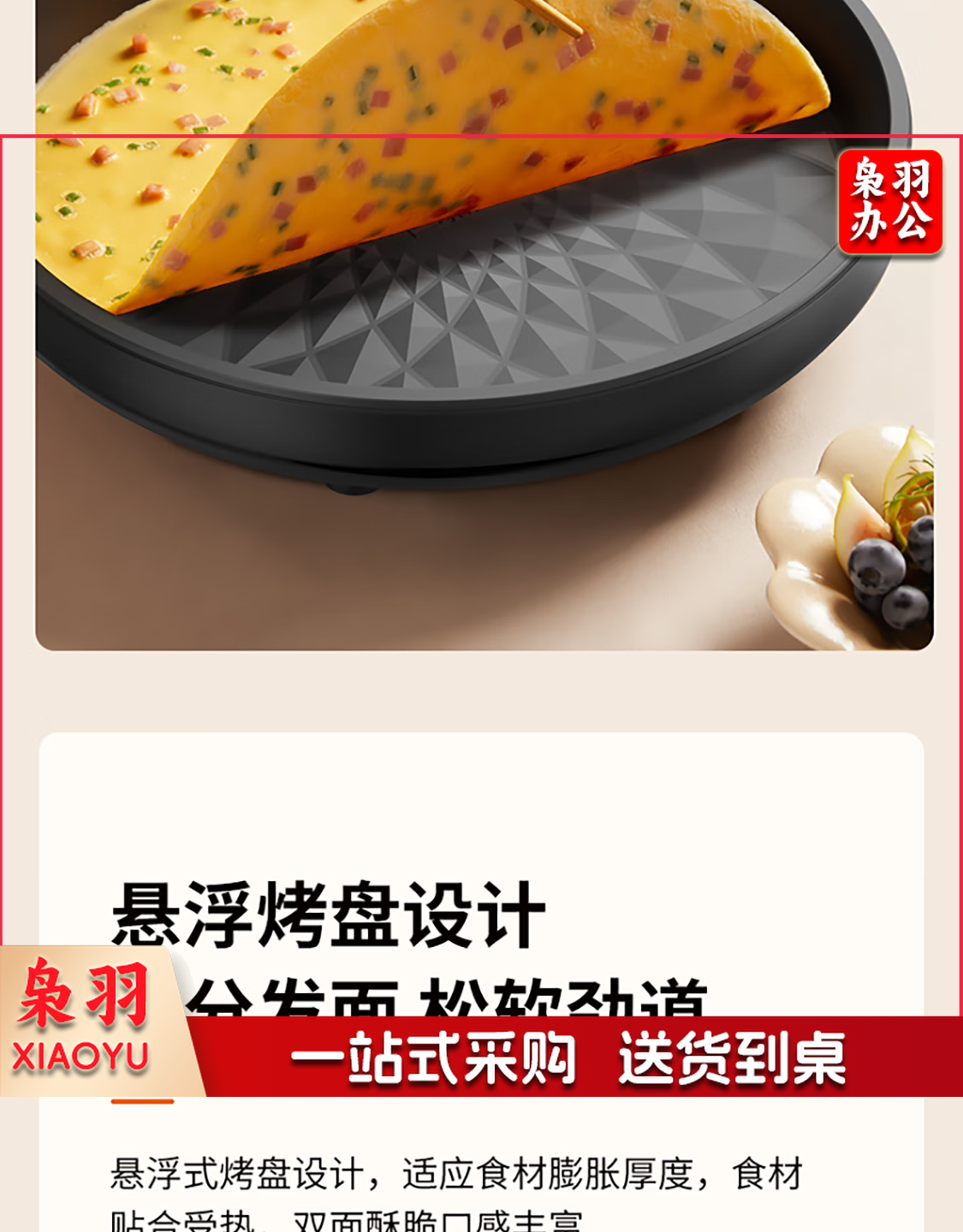 九阳 电饼铛 多功能煎饼机大容量双面加热多功能煎烤机 悬浮式不粘烤盘烙饼机 JK23-GK655【23cm】