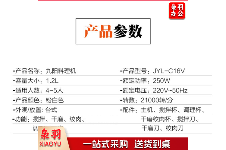 九阳 料理机多功能家用电动辅食搅拌机果汁绞肉JYL-C16V 白色