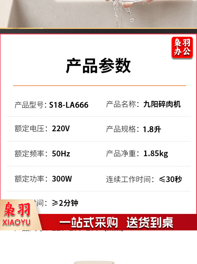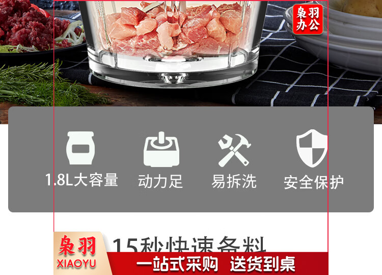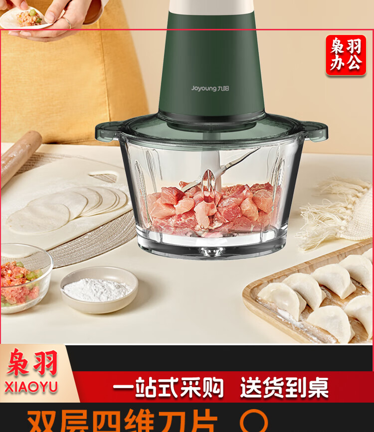 九阳 绞肉机家用电动多功能料理机搅拌切菜绞馅不锈钢双层刀S18-LA666(线下同款)