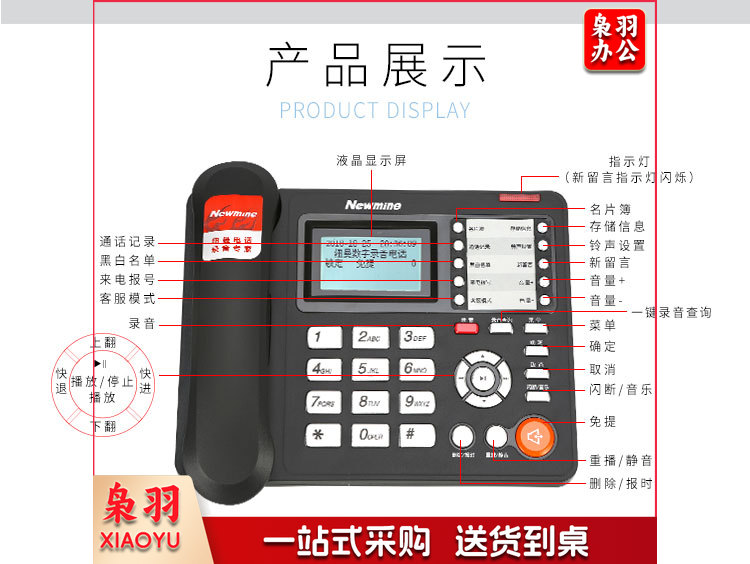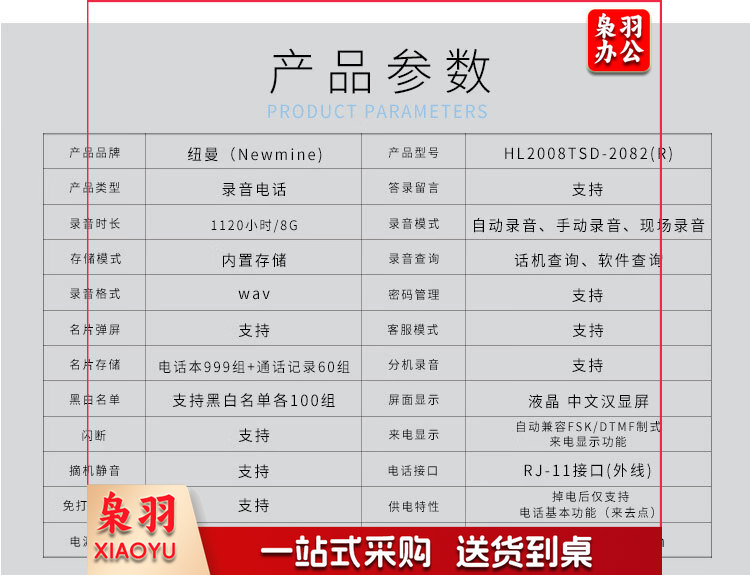 纽曼(Newmine)HL2008TSD-2082(R) 固定录音电话机 商务座机录音管理系统 会议录音电话