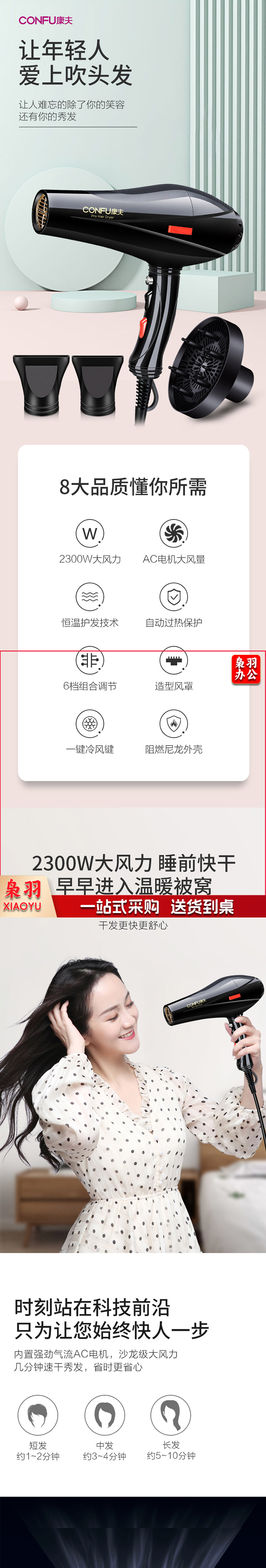 康夫(CONFU)电吹风机速干冷热风速干电风筒 KF-8905