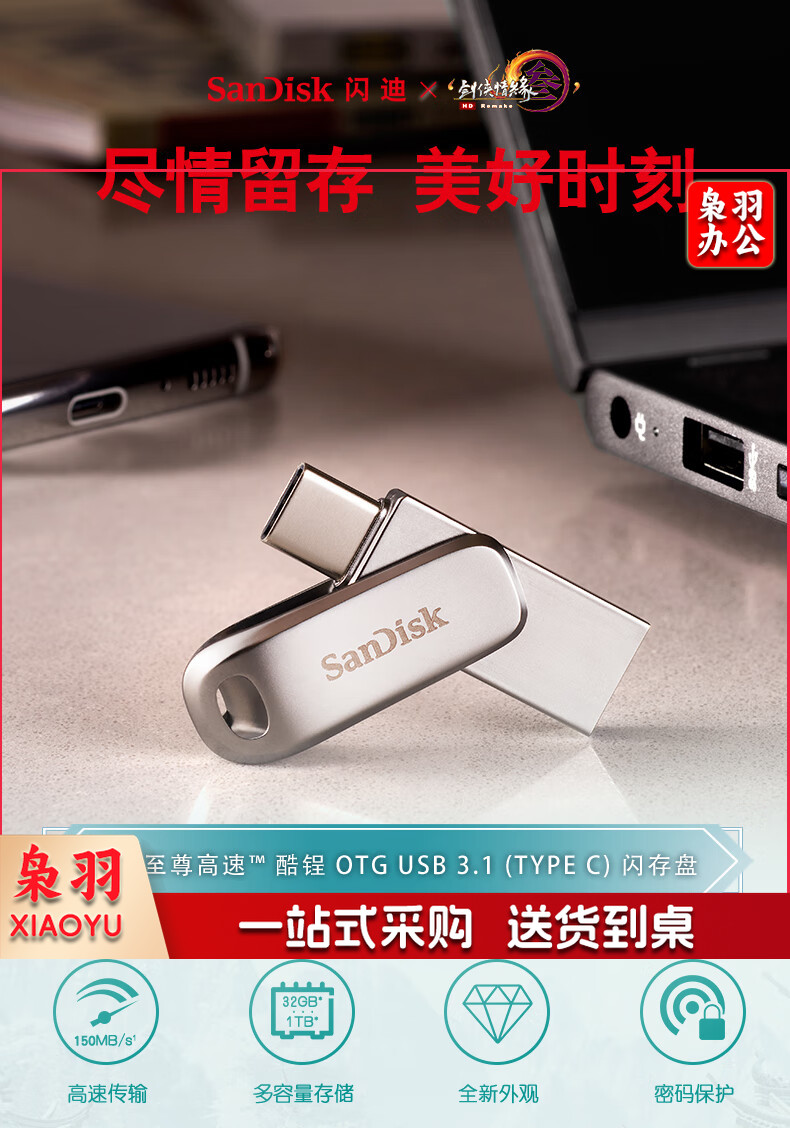 闪迪(SanDisk) 256GB Type-c 手机U盘 DDC4 安全加密 usb双接口优盘 手机平板笔记本电脑通用