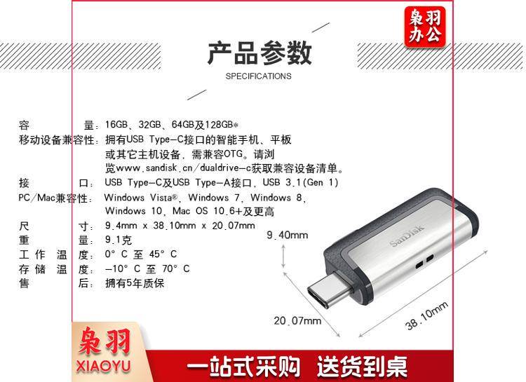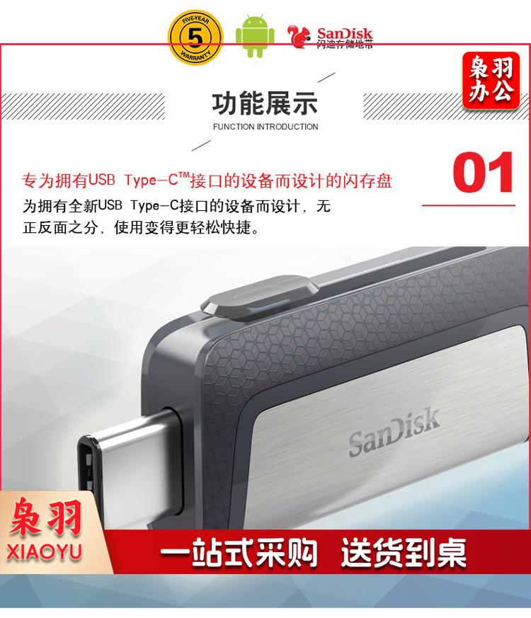 闪迪(SanDisk)64GB Type-C USB3.1 手机U盘 DDC2至尊高速版