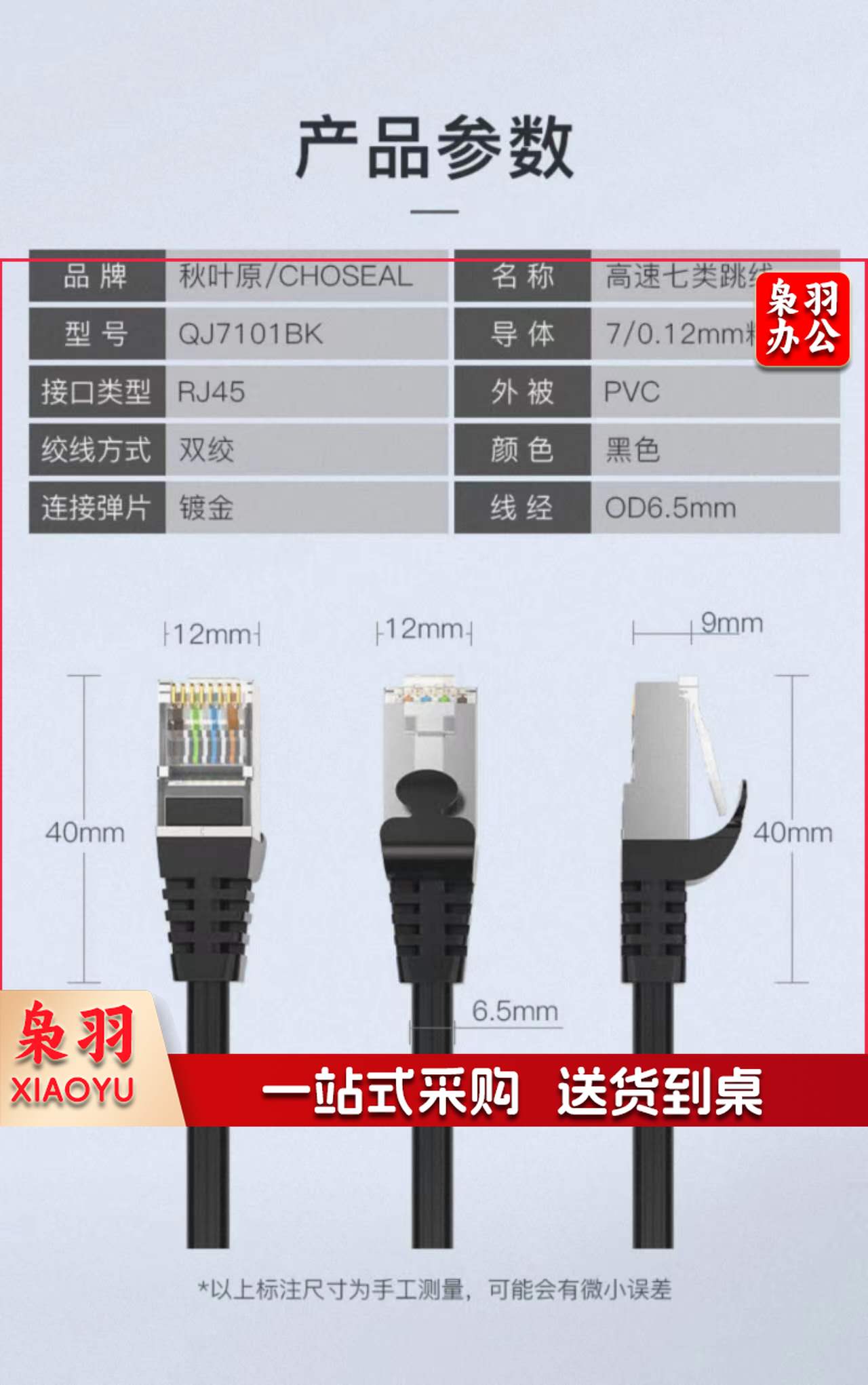 秋叶原(CHOSEAL)1米七类网线 Cat7类纯铜双屏蔽万兆网络连接线 7类宽带电脑游戏监控网络跳线1米 QJ7101BKT1