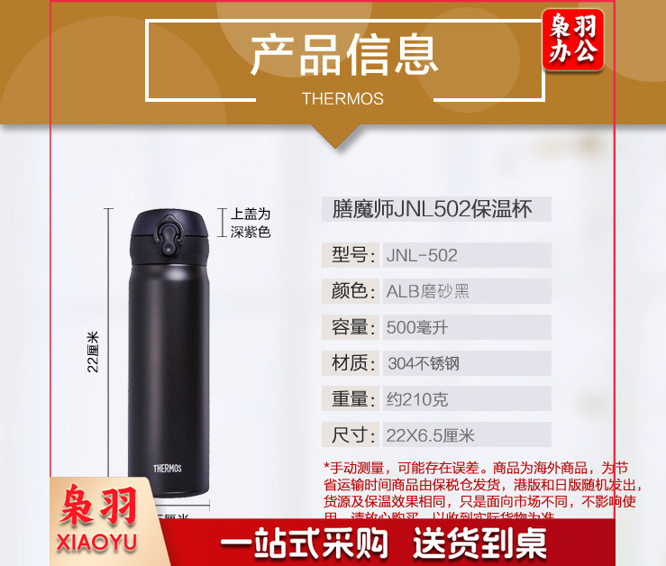 膳魔师(THERMOS) 保温杯保冷杯磨砂黑500ml 旅行便携不锈钢车载水杯学生杯子生日礼物多色可选JNL-502