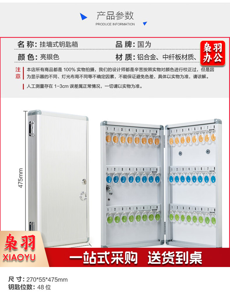 国为(COUVEZI) 铝合金钥匙收纳 钥匙管理箱/钥匙盒/钥匙柜壁挂含钥匙牌 48位钥匙箱带锁