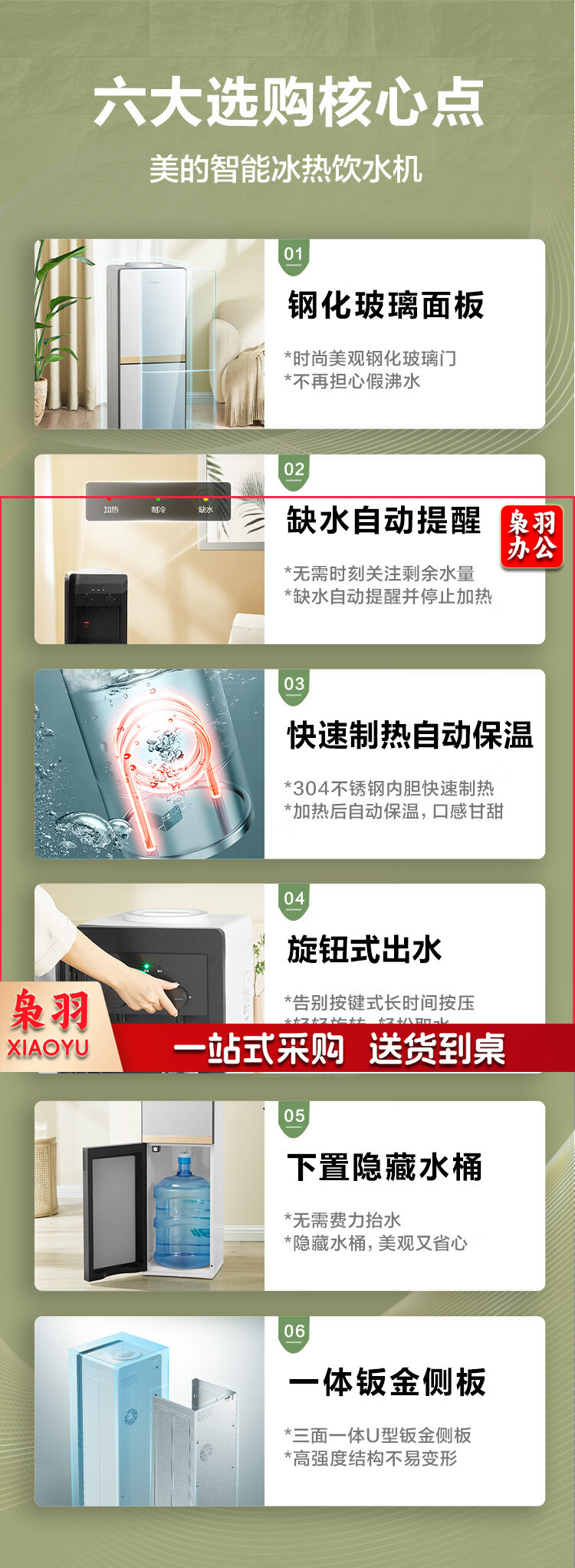 美的(Midea)饮水机家用下置式冰热两用旋钮出水自动保温 立式饮水机YD1611S-X
