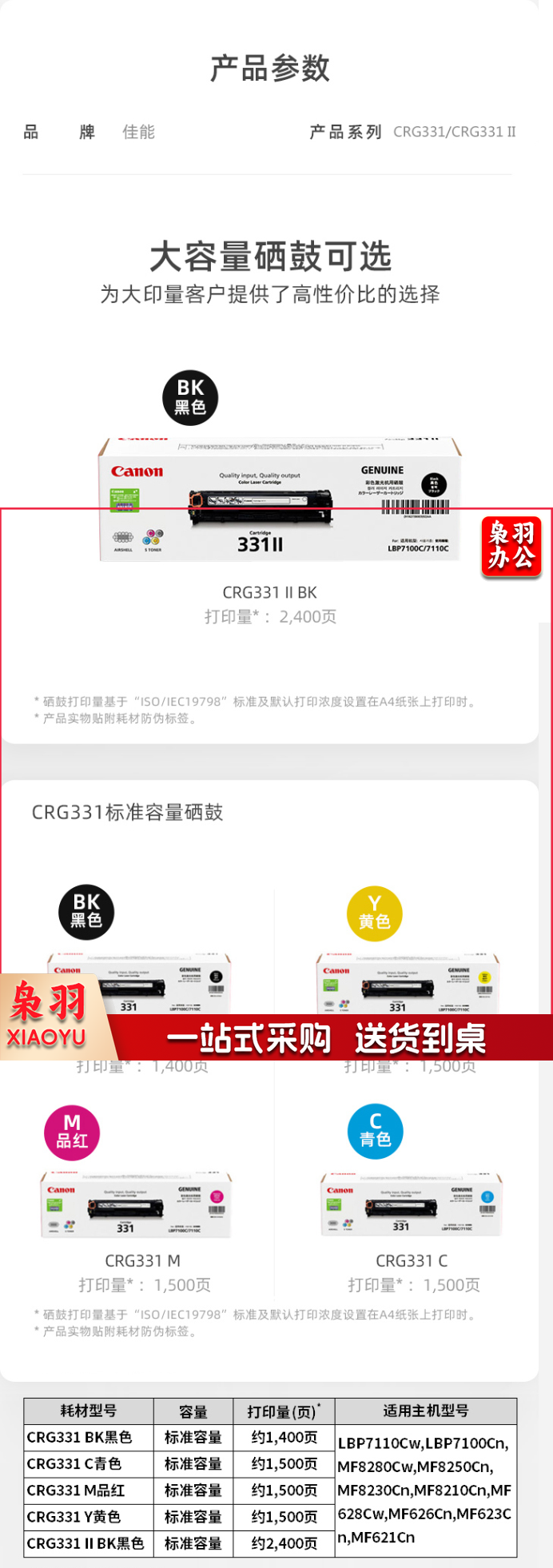 佳能(Canon)硒鼓CRG331 Y黄色(适用LBP7110Cw/MF8280Cw)