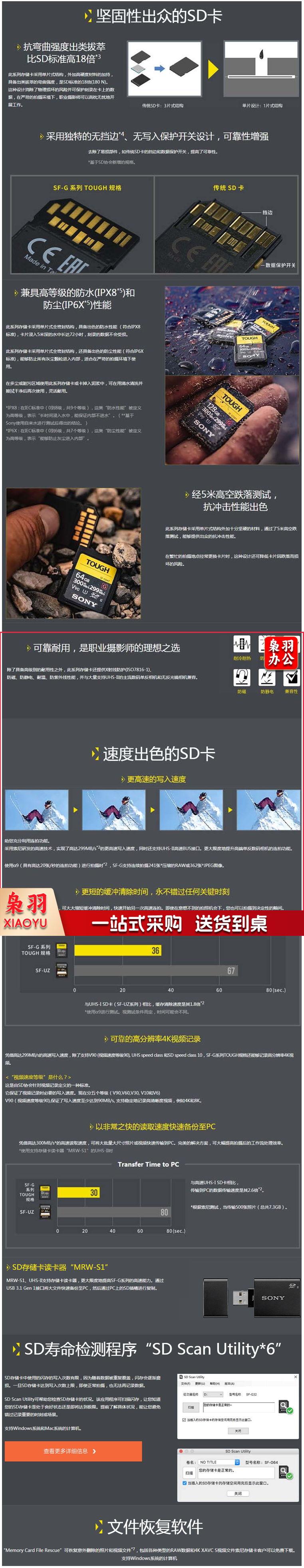 索尼(SONY)SF-G64T/T1 SF-G 系列64g TOUGH规格SD卡 读取300MB/S 写入299MB/S