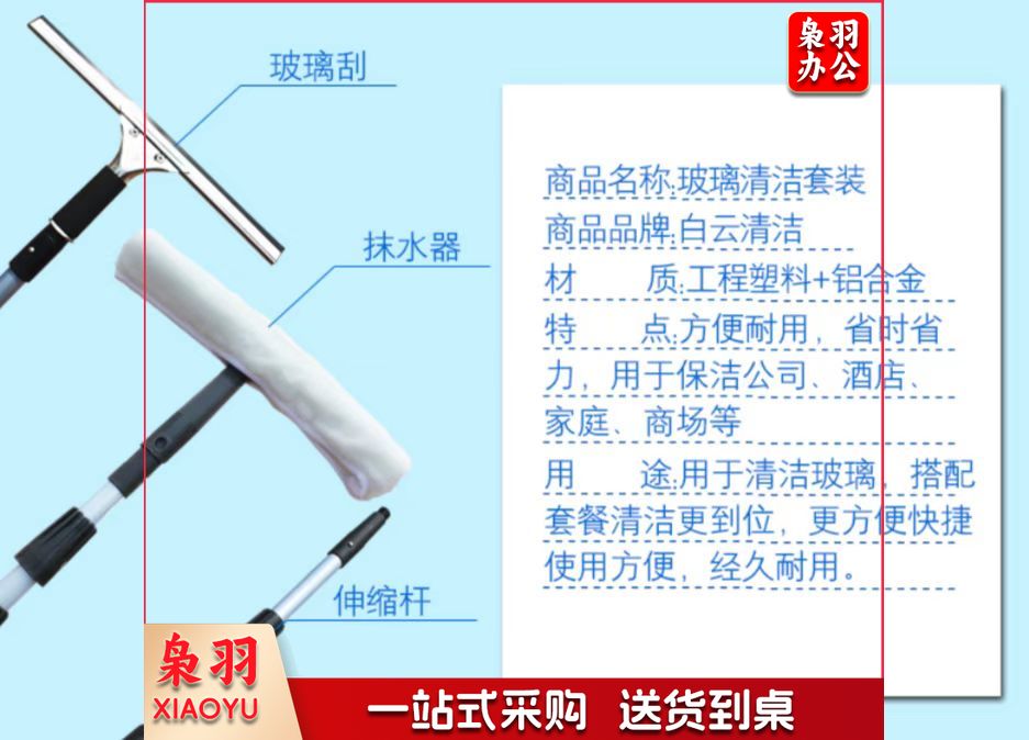 白云(BAIYUN)玻璃刮擦伸缩杆三件套擦窗器 2.4米伸缩杆套装
