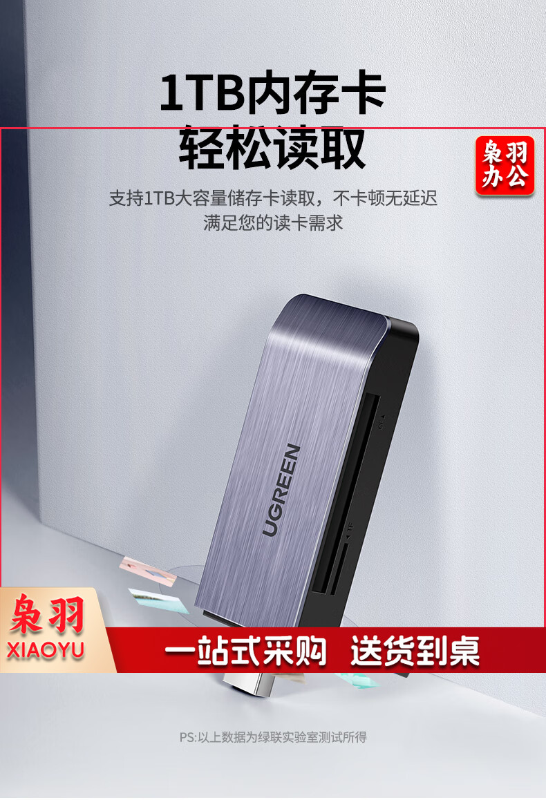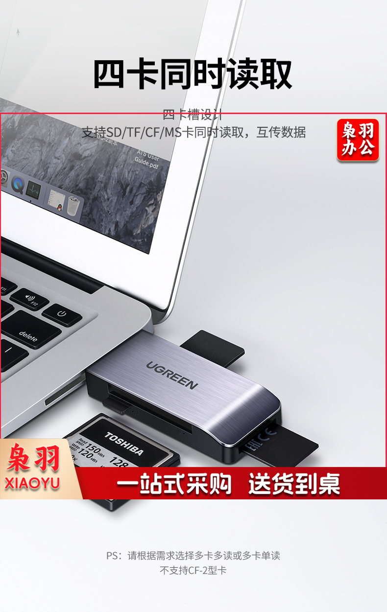 绿联(UGREEN)50541 USB3.0高速读卡器 多功能合一读卡器 支持SD/TF/CF/MS多读型手机相机内存卡记录仪存储卡