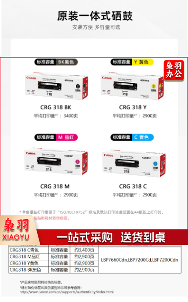 佳能(Canon)硒鼓 CRG-318BK (适用LBP7200cd/7200cdn/7660cdn)