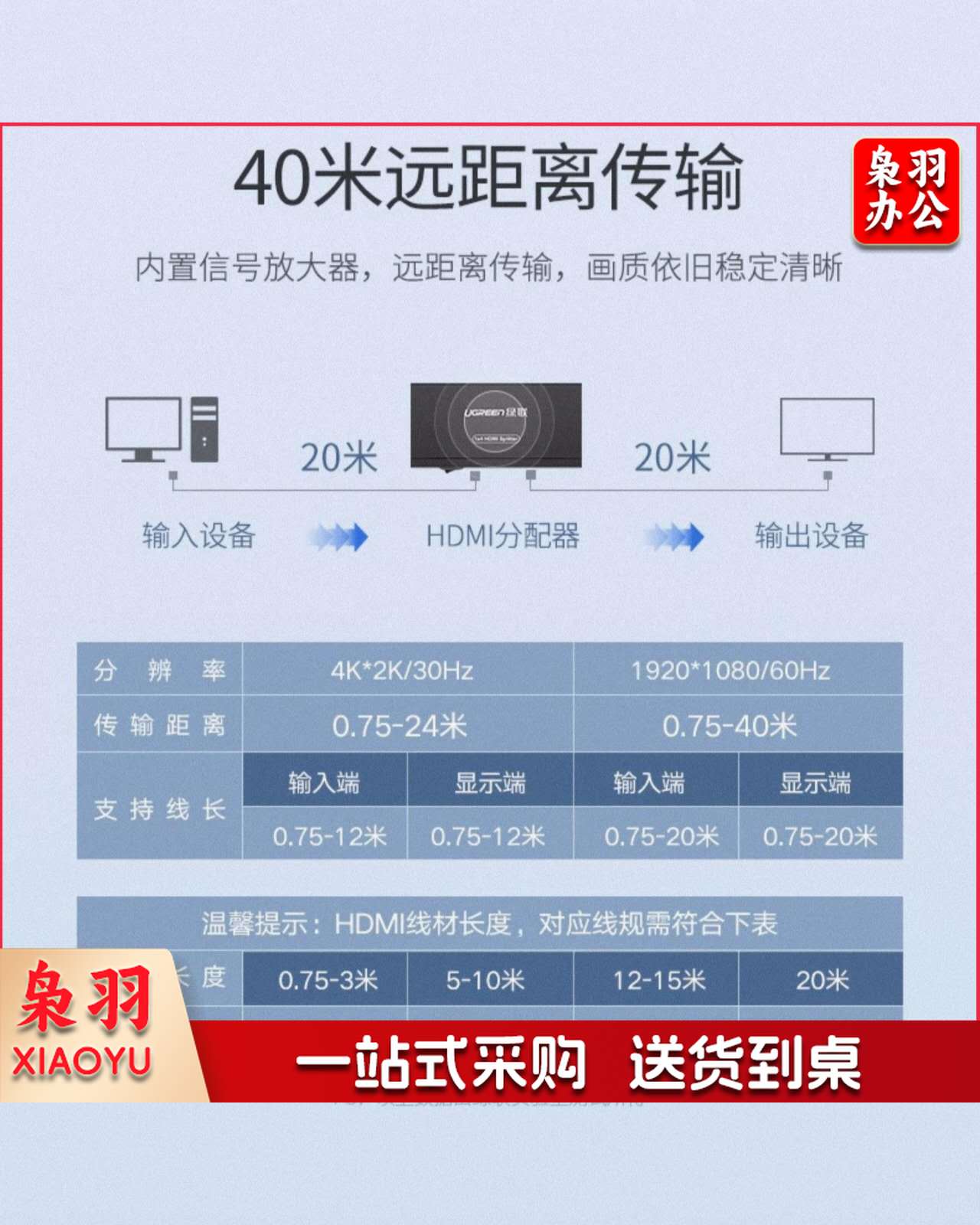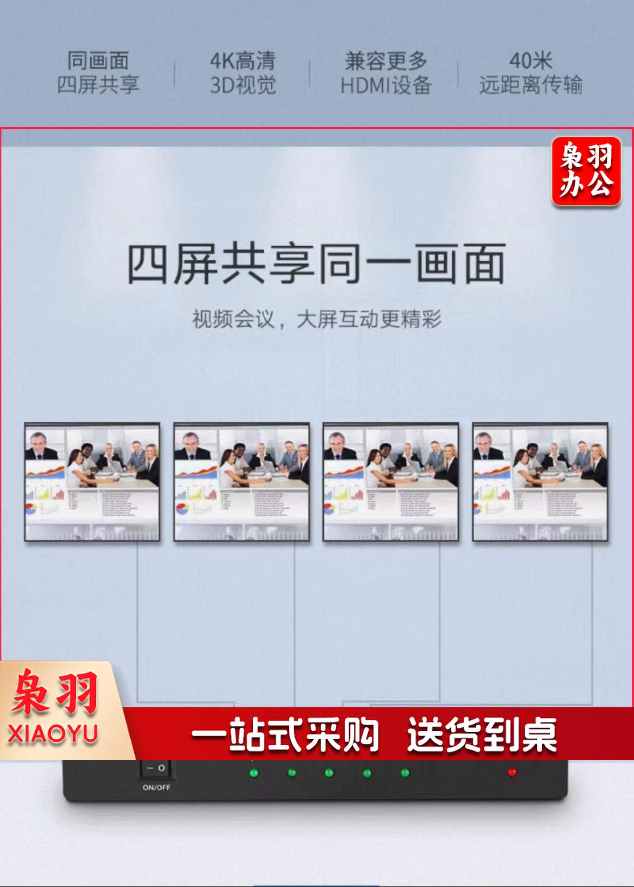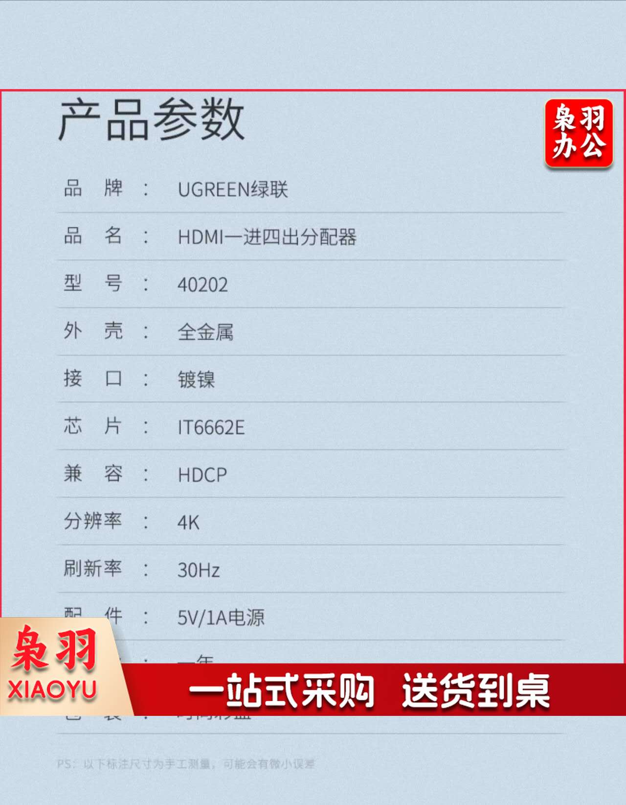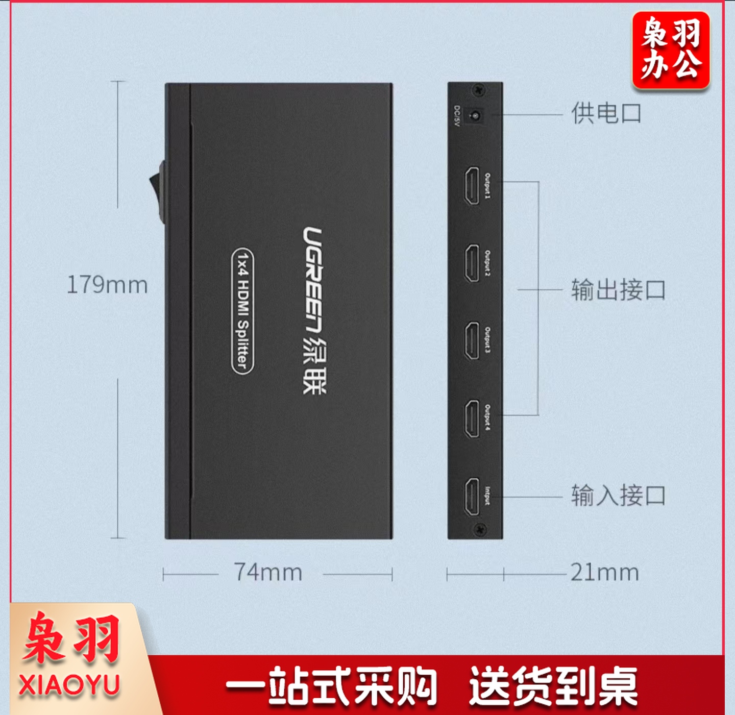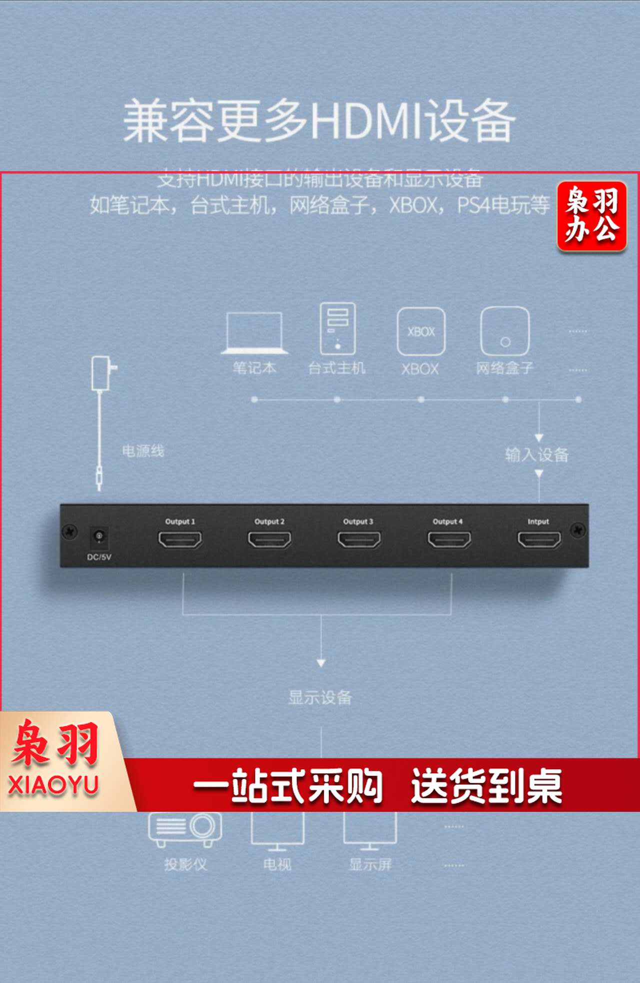 绿联40202 HDMI分配器一分四 一进四出4K数字高清视频分屏器 笔记本电脑电视盒子接显示器投影仪1进4出 一分四
