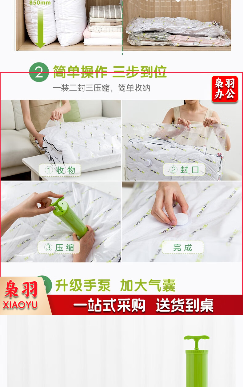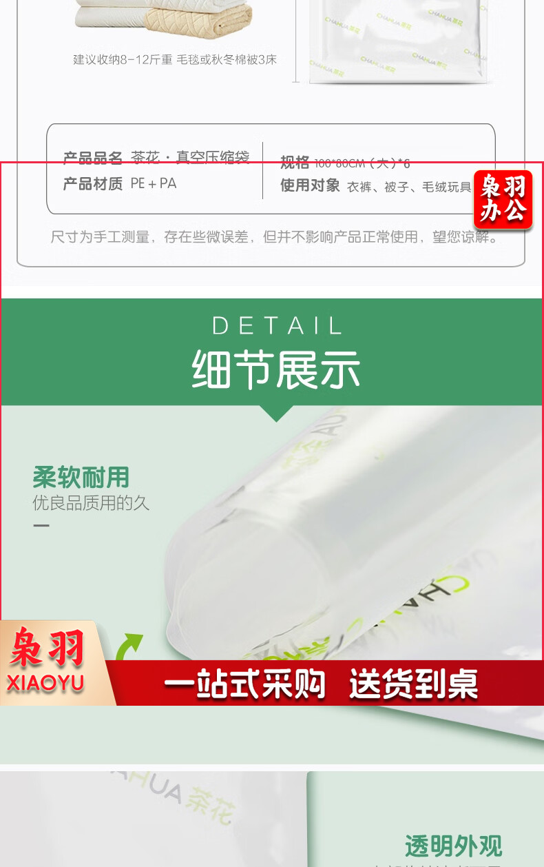茶花 真空压缩袋 棉被褥收纳袋 衣物整理袋 中号搬家打包真空袋带手泵6大号