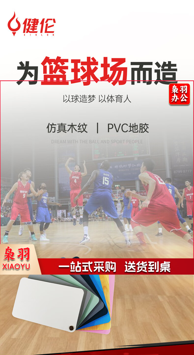 健伦(JEEANLEAN)室内篮球场地胶高端场馆专用防滑运动地板赛事训练通用PVC木纹7mm