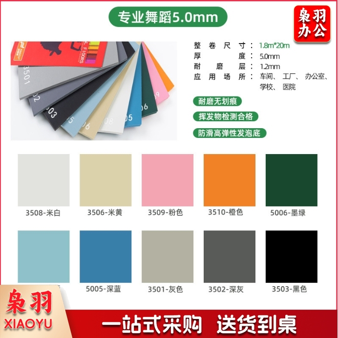 5.0mm专业舞蹈地胶 地胶上门安装舞蹈教室通透无划痕地胶垫街舞拉丁舞 塑胶PVC地板胶5.0mm专用舞蹈地胶垫