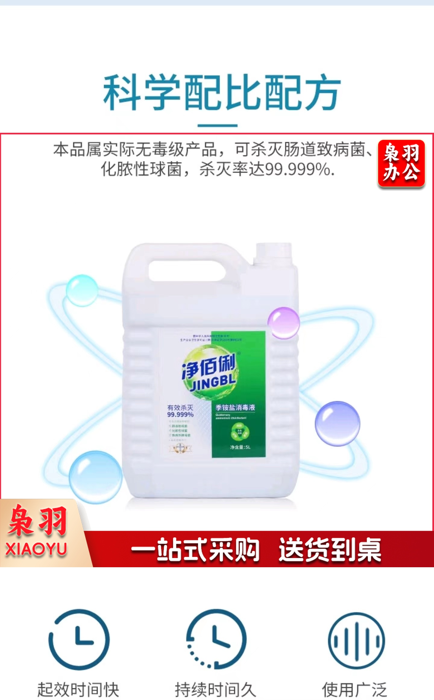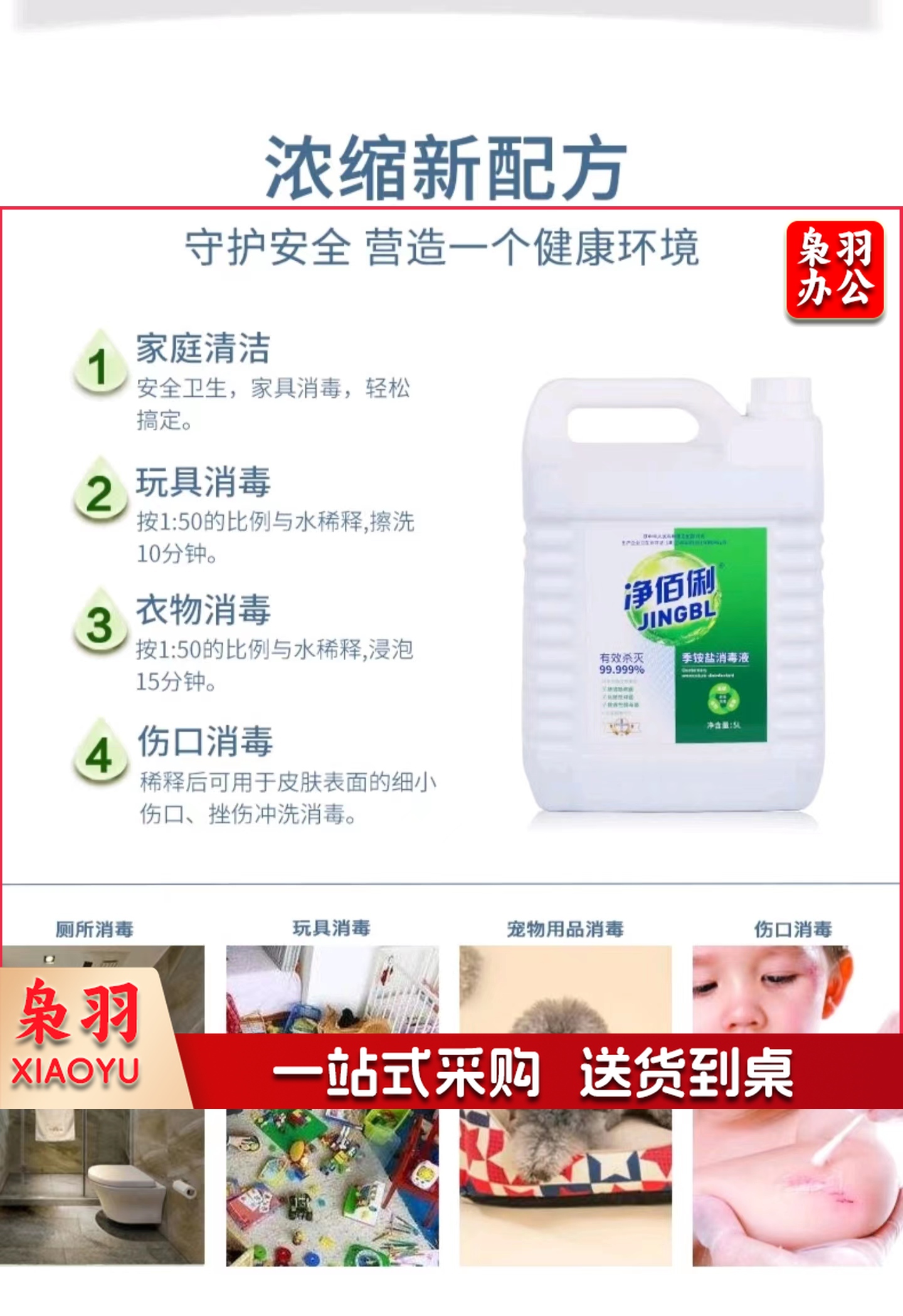 净佰俐季铵盐消毒液5L多用途杀菌率99.999%酒店工业单位家居衣物不刺鼻