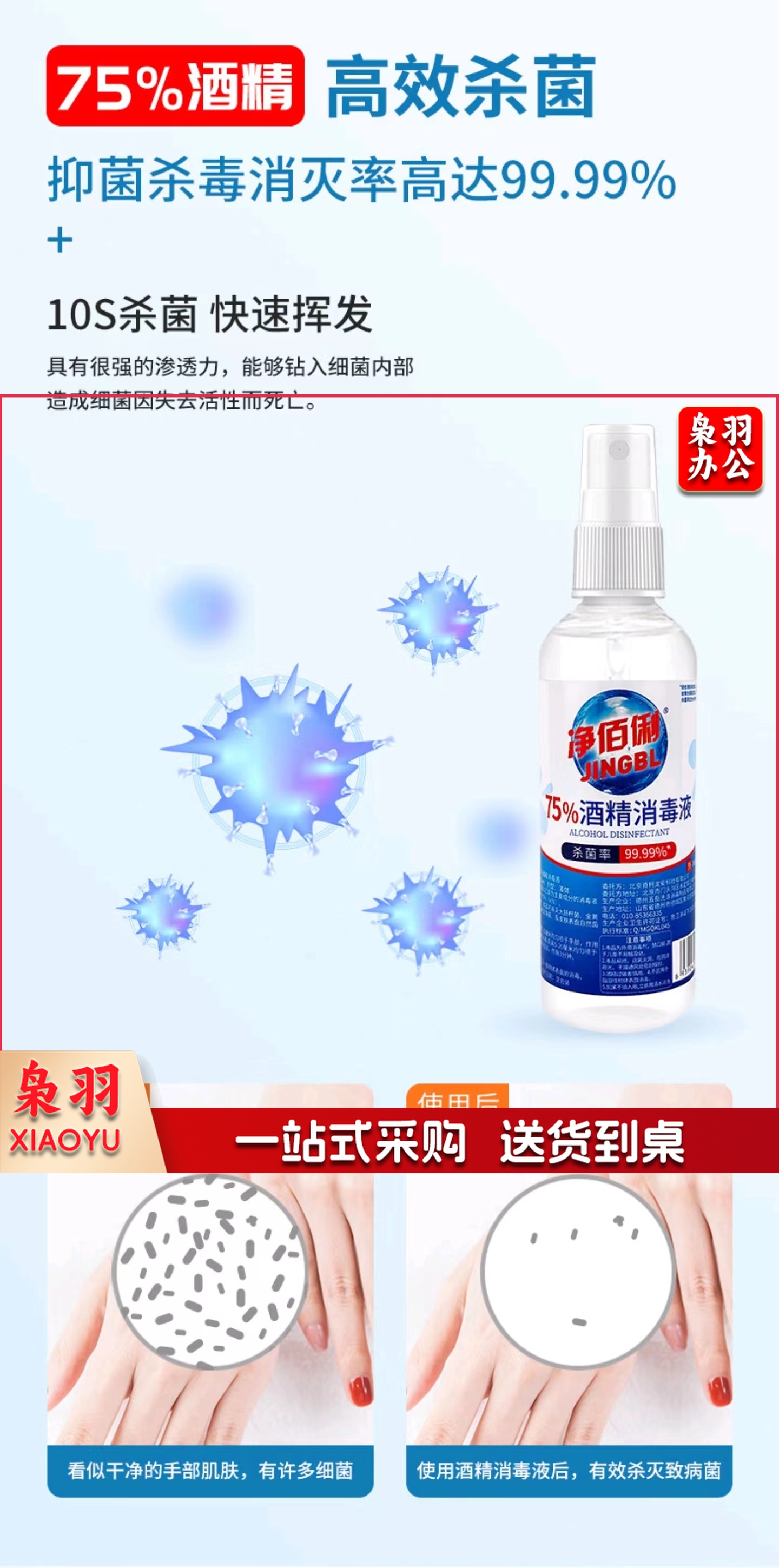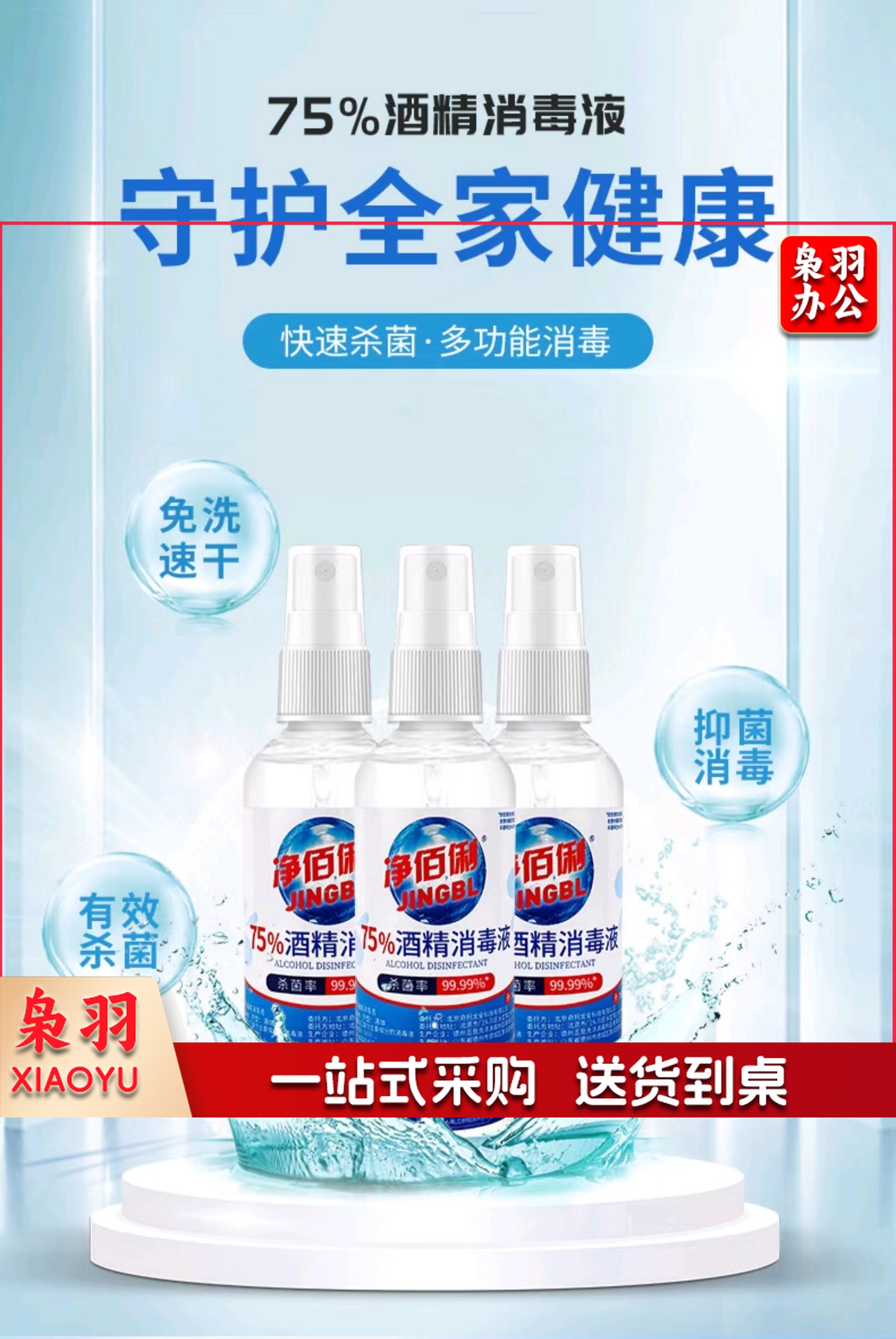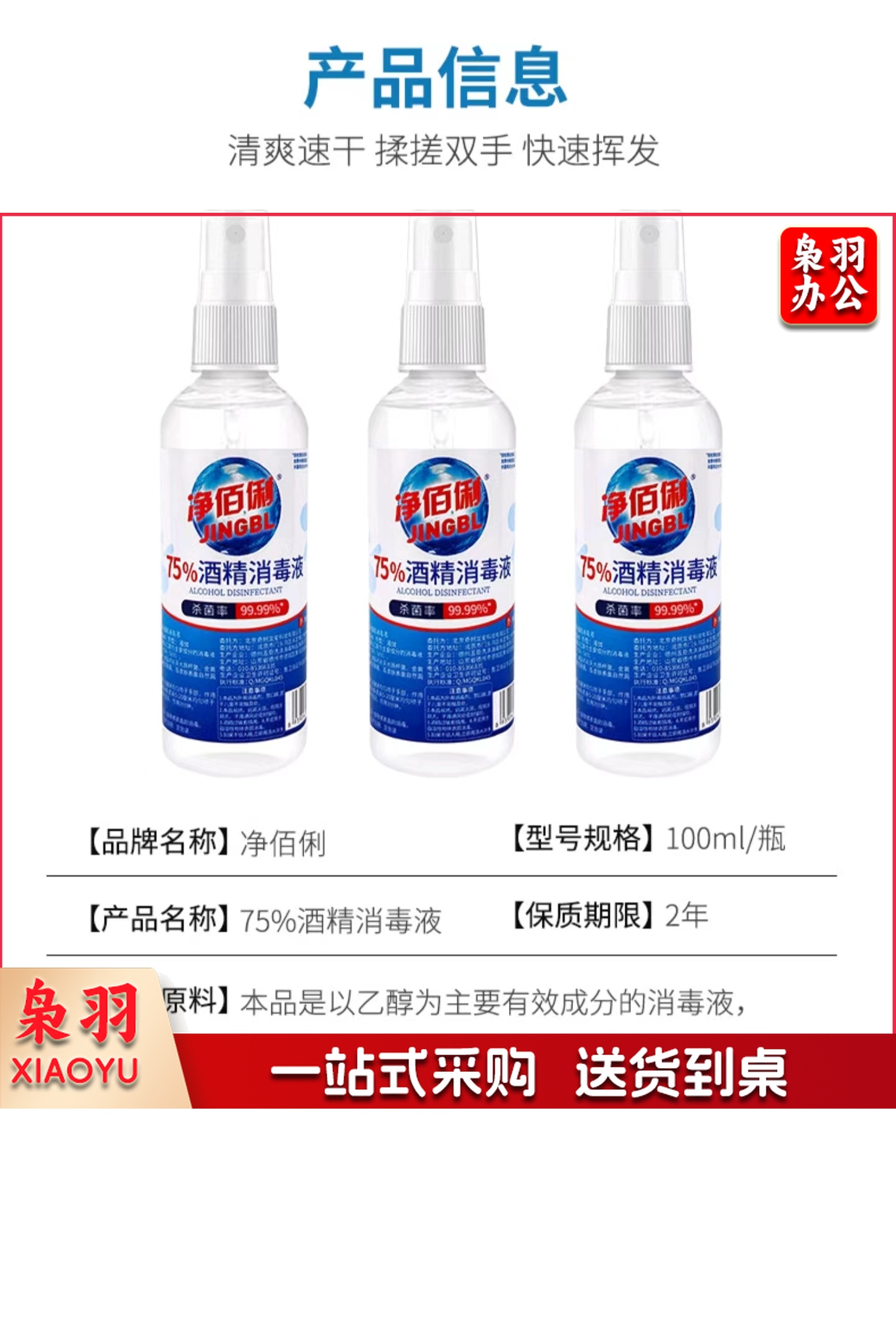 净佰俐75%酒精消毒液 100ml*160瓶整箱装 酒精喷雾液体 免洗手乙醇