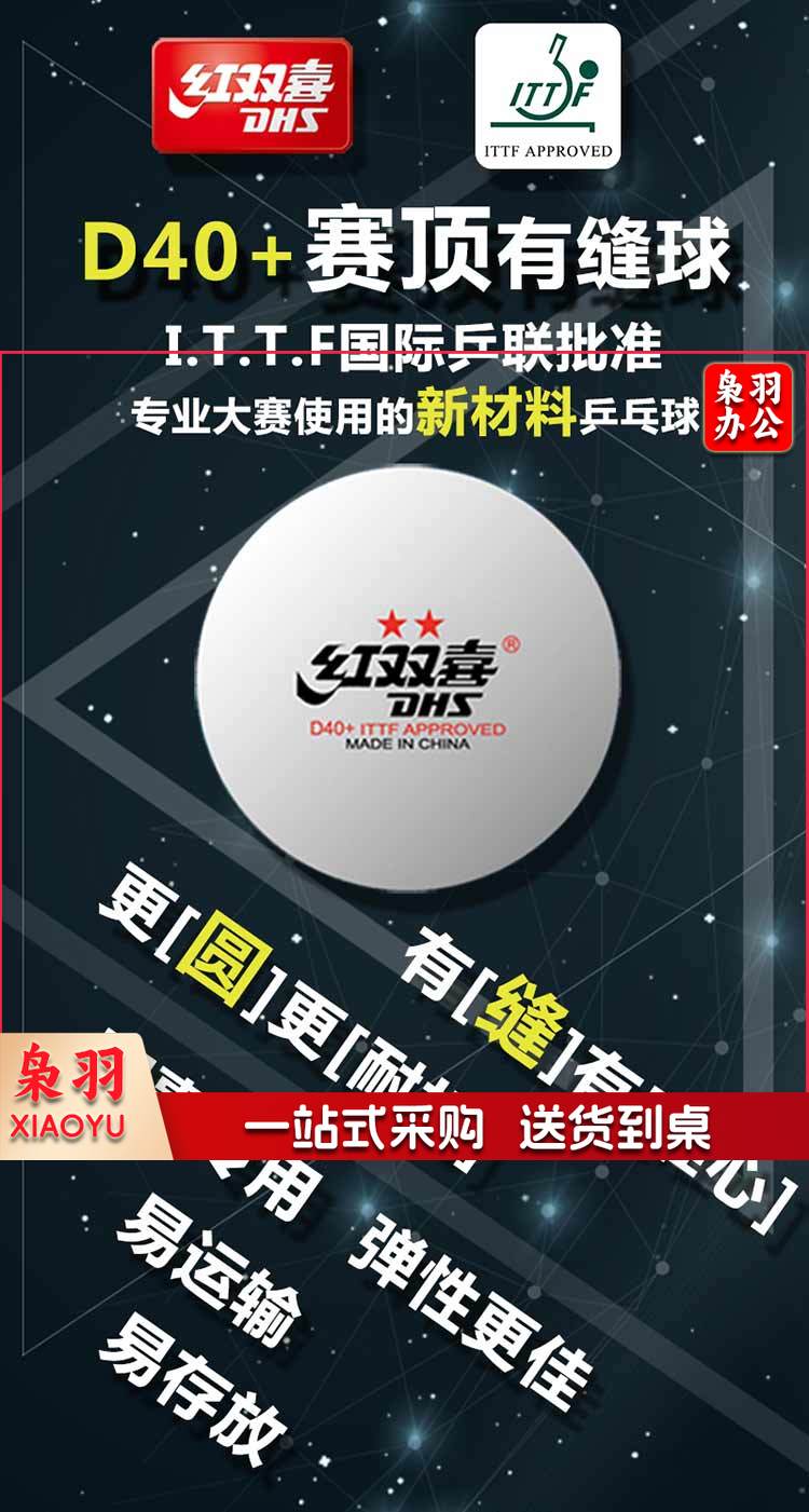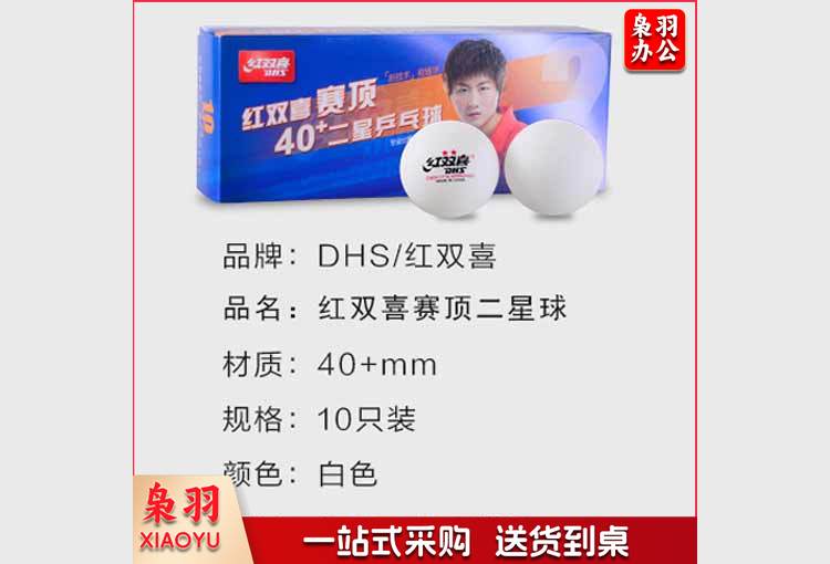 红双喜(DHS)赛顶二星乒乓球40mm 白色 (10只/盒)