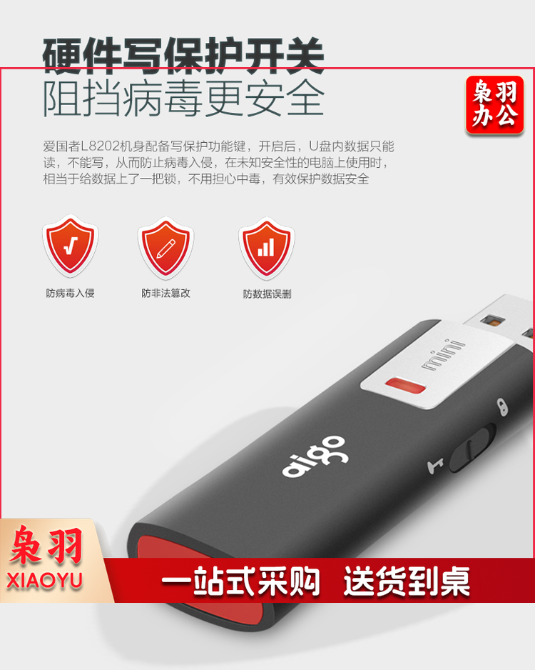 爱国者(aigo)16GB USB2.0 U盘 L8202写保护 黑色