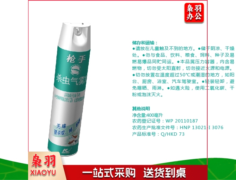 枪手 600ML 杀虫气雾剂 无味 枪手杀虫剂 驱杀蚊虫苍蝇飞飞虫喷雾剂