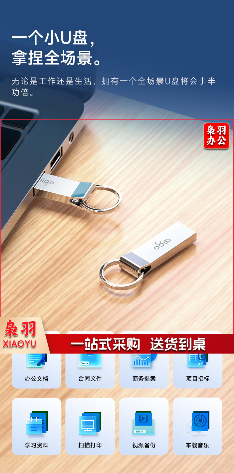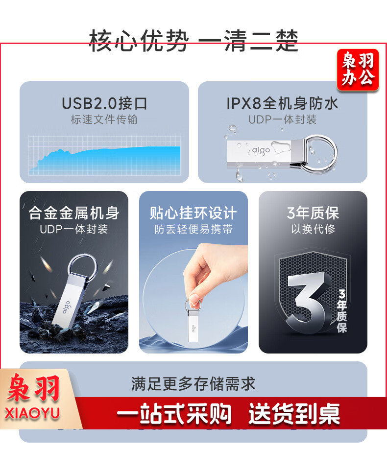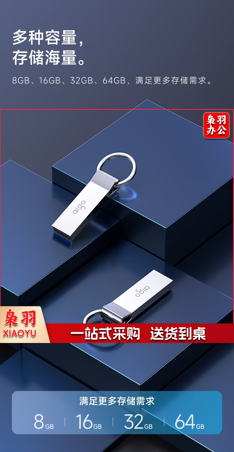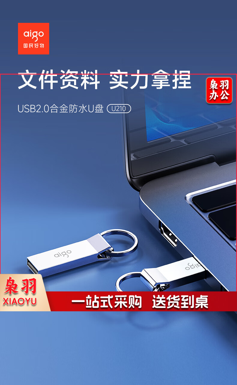 爱国者(aigo)8GB USB2.0 U盘 U210 招投标金属企业定制u盘 车载办公小容量U盘 防丢迷你优盘